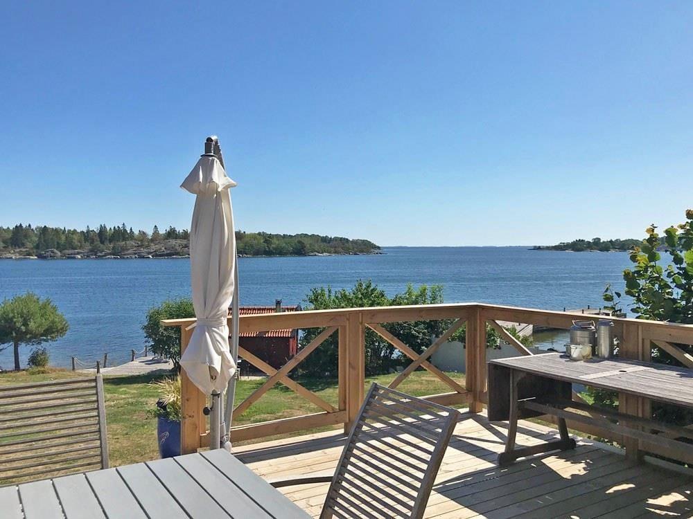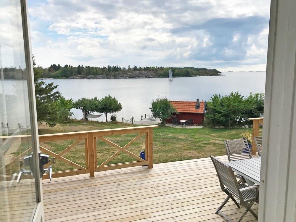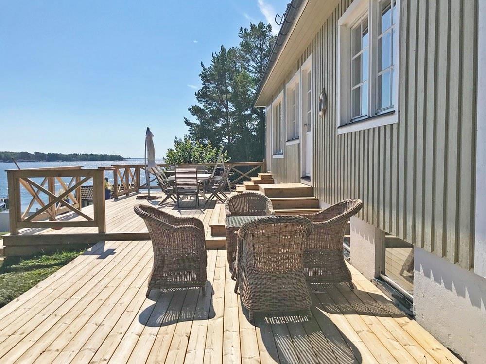 Udendørs finder du en stor, sydvendt veranda med vidunderlig udsigt over Østersøen, to mindre overdækkede verandaer, havemøbler, forskellige siddepladser og en stor græsplæne til leg og afslapning. En opvarmet havestue med spisebord og varmeapparat giver også på køligere dage et hyggeligt sted med havudsigt. Sommerhuset inkluderer også to kajakker og en robåd til maksimalt fire personer (redningsvest er påbudt). En træfyret sauna direkte ved havet kan benyttes mod et gebyr på 500 SEK pr. gang.