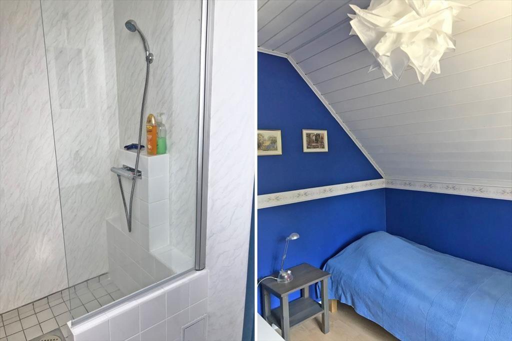 Fire af soveværelserne er indrettet med to enkeltsenge hver, som om ønsket kan sættes sammen. De tre øvrige værelser har enkeltsenge. Til små børn kan der efter forudgående aftale stilles en tremmeseng til rådighed. Køkkenet er udstyret med elektrisk komfur, to ovne, køleskab, opvaskemaskine, mikrobølgeovn, kaffemaskine og brødrister. Der er også spisebord og højstol til børn. Fra køkkenområdet er der direkte udgang til den store veranda med havudsigt. I stuen finder du en hyggelig sofagruppe, et stort spisebord, en åben pejs og et TV. Derudover er der et separat klubrum med billardbord til hyggelige aftener. De to badeværelser er hver især udstyret med bruser, toilet og rindende varmt vand. Desuden er der et vaskerum med vaskemaskine og tørretumbler.