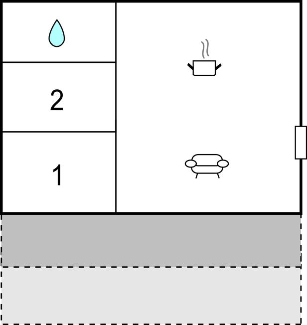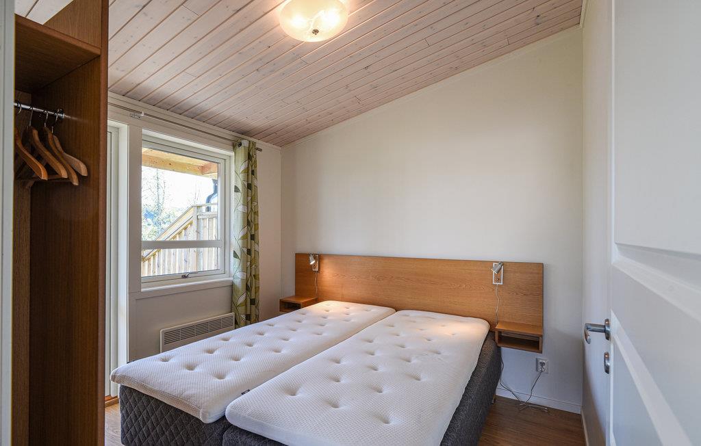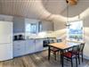 Den kombinerede opholds- og spisestue i jeres feriehus føles særligt rummelig og lys takket være de store vinduer. Slå jer ned ved spisebordet ved siden af ??det moderne, veludstyrede køkken, og tilbered jeres måltider, mens I nyder udsigten over de grønne omgivelser. Slap af i den komfortable hjørnesofa i stuen og benyt jer af sovesofaen som en ekstra soveplads.