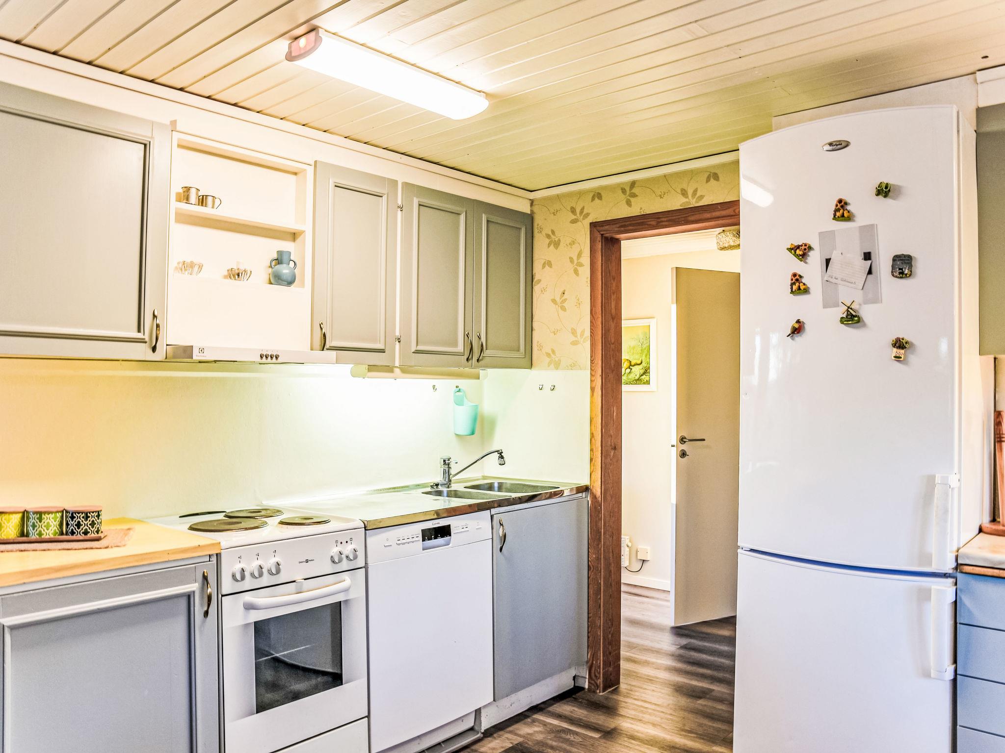 "Skurå Villan", 3-room house 71 m2. Comfortable and rustic furnishings: living room with 1 sofabed (140 cm, length 200 cm), Scandinavian wood stove and TV (flat screen). 1 room with 1 double bed (180 cm, length 200 cm). 1 room with 1 x 2 bunk beds (140 cm, length 200 cm) (70 cm, length 200 cm). Kitchen (oven, 4 ceramic glass hob hotplates, toaster, kettle, microwave, freezer, electric coffee machine) with dining table. Shower, sep. WC. Electric heating, wood heating, forced-air heating. Wooden floors, parquet floors. Terrace 15 m2. Terrace furniture, barbecue (portable). View of the lake. Facilities: washing machine. Internet (WiFi, free). Please note: non-smoking house. Smoke alarm.
