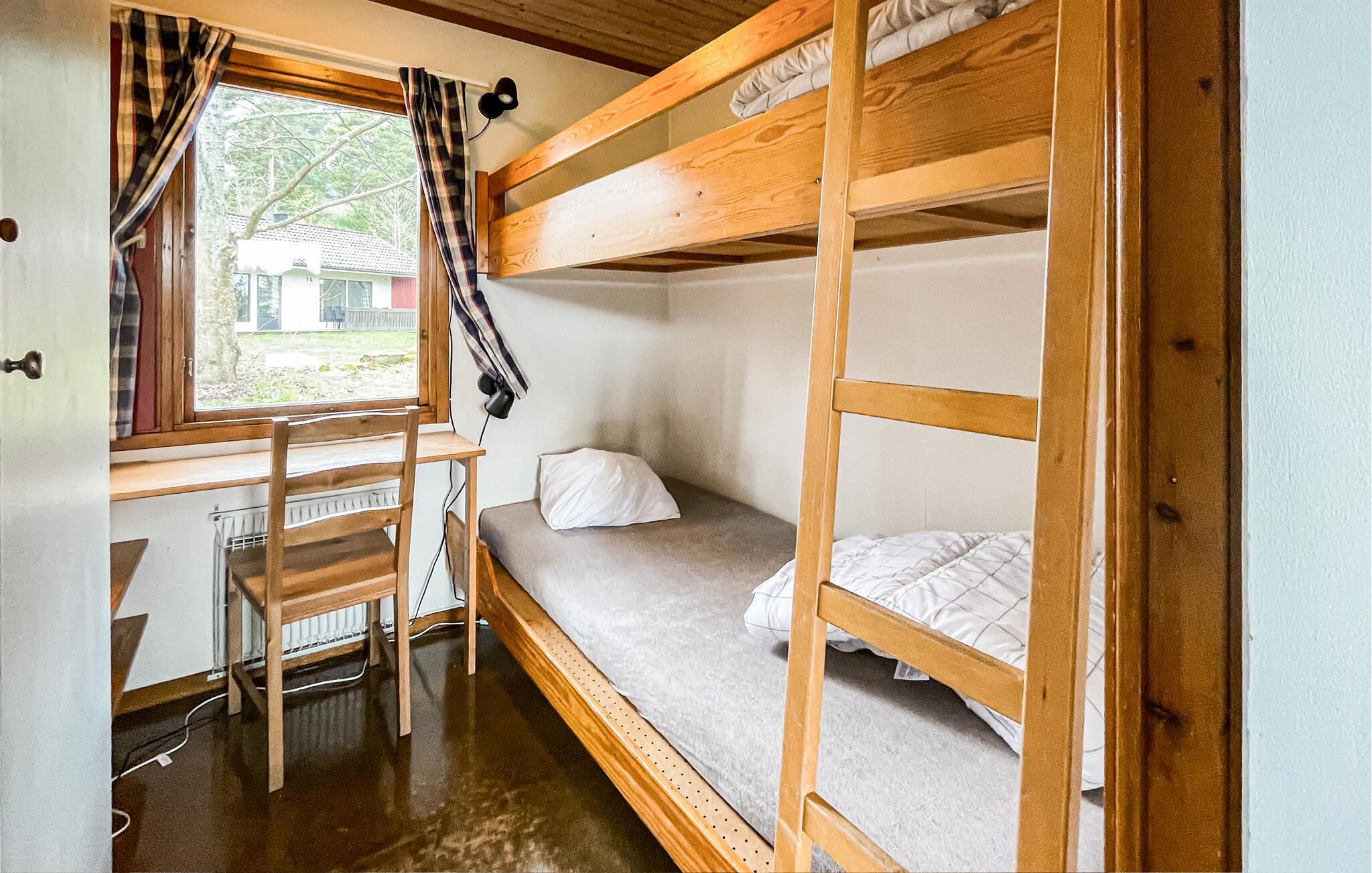 Tilbring ferien i Degeberga Stugby, porten til den populære Österlen-region. Den rolige beliggenhed i skovbrynet tilbyder de bedste betingelser for afslappende dage med familien. Oplev den typiske svenske hytteatmosfære og oplev de charmerende omgivelser omkring Kristianstad, Åhus, Malmø og Lund. Huset er funktionelt indrettet og er noget særligt med sin enkle, lyse opholdsstue. Gør det behageligt i lænestolene eller sofaen, og varm jer ved pejsen på køligere aftener. Tilbered enkle måltider i det kompakte tekøkken og nyd dem sammen ved spisebordet med udsigt over de grønne områder. Store vinduer lukker masser af lys ind og skaber en venlig atmosfære indenfor.