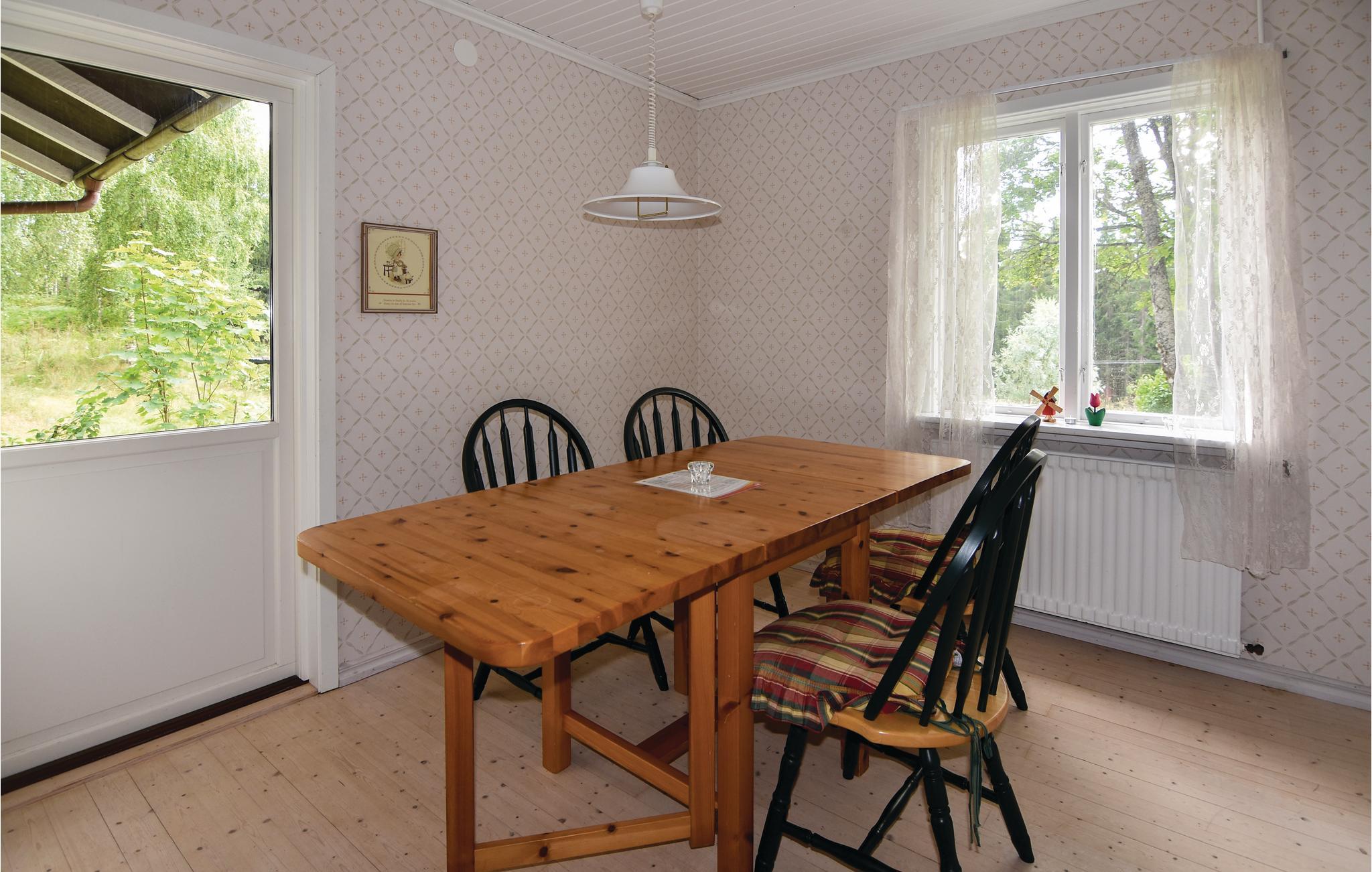 Træd ud i den store have, der grænser op til skoven, og fyld lungerne med den friske luft. Ejendommen byder på masser af plads til at lege, slappe af og nyde tiden sammen på terrassen. Lyt til træernes raslen, og hold øje med dyrelivet. I finder talrige bær og svampe i den omkringliggende skov. Gå en tur til den nærliggende sø og brug robåden til fredelige timer på vandet.