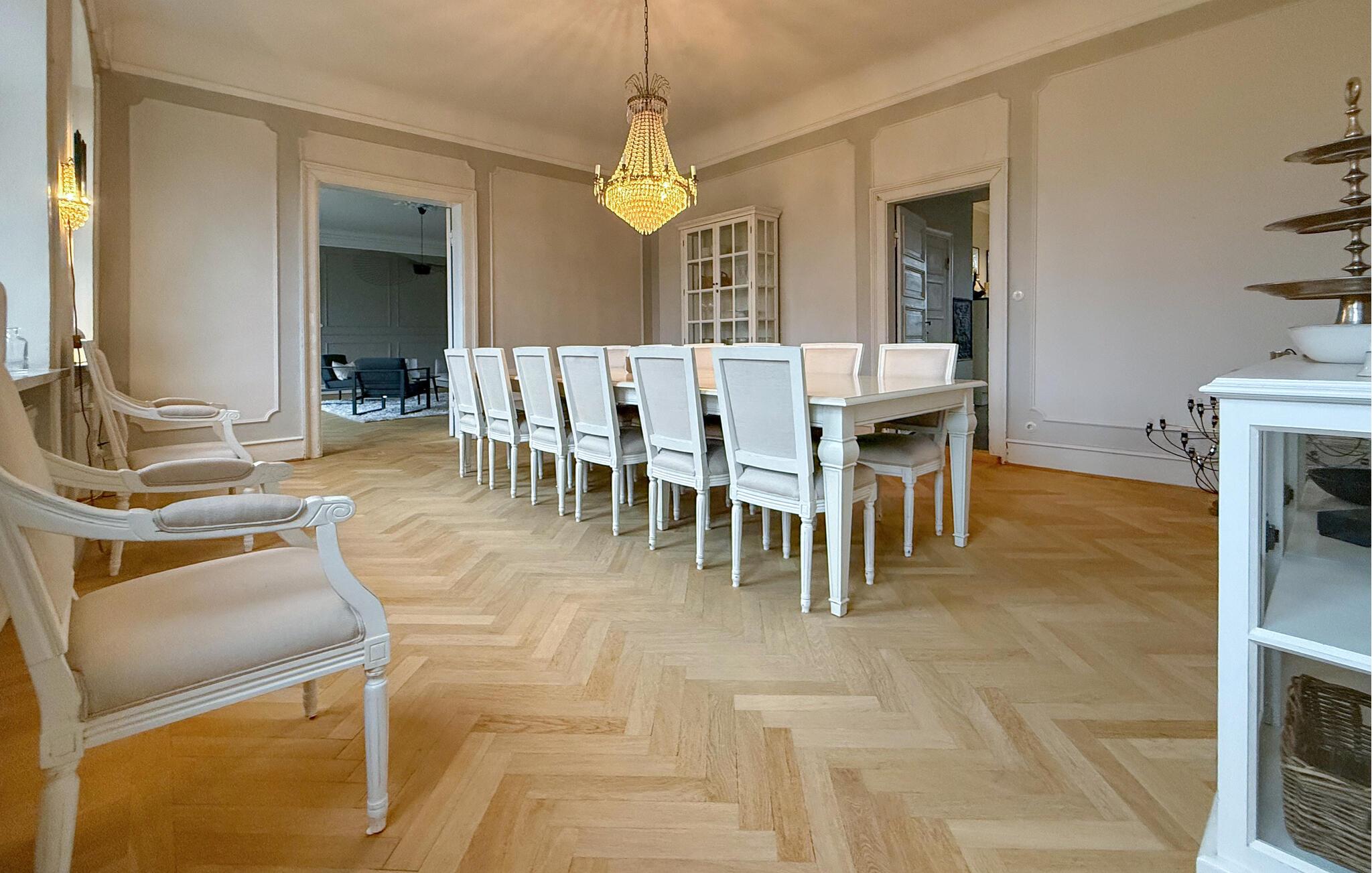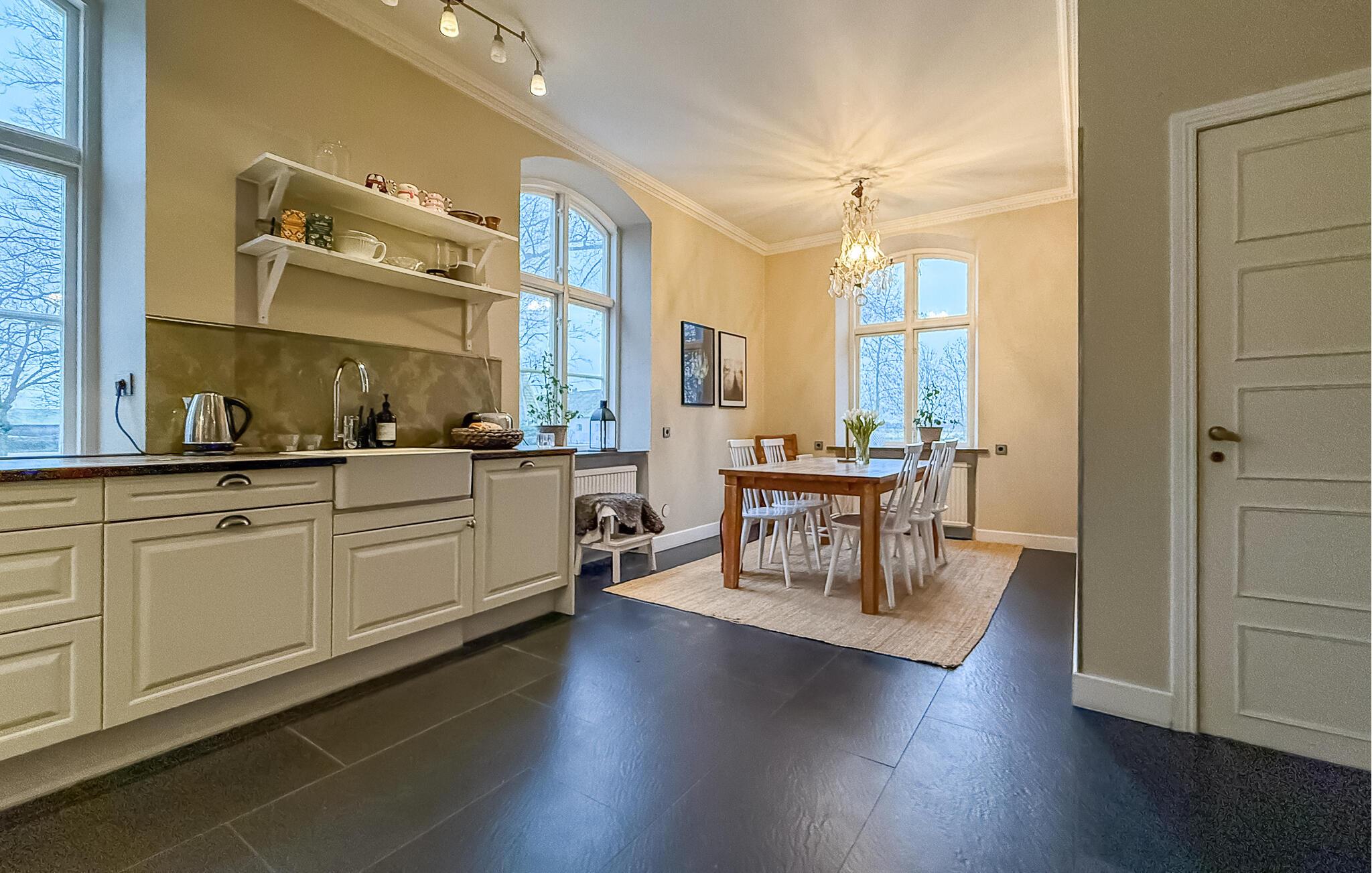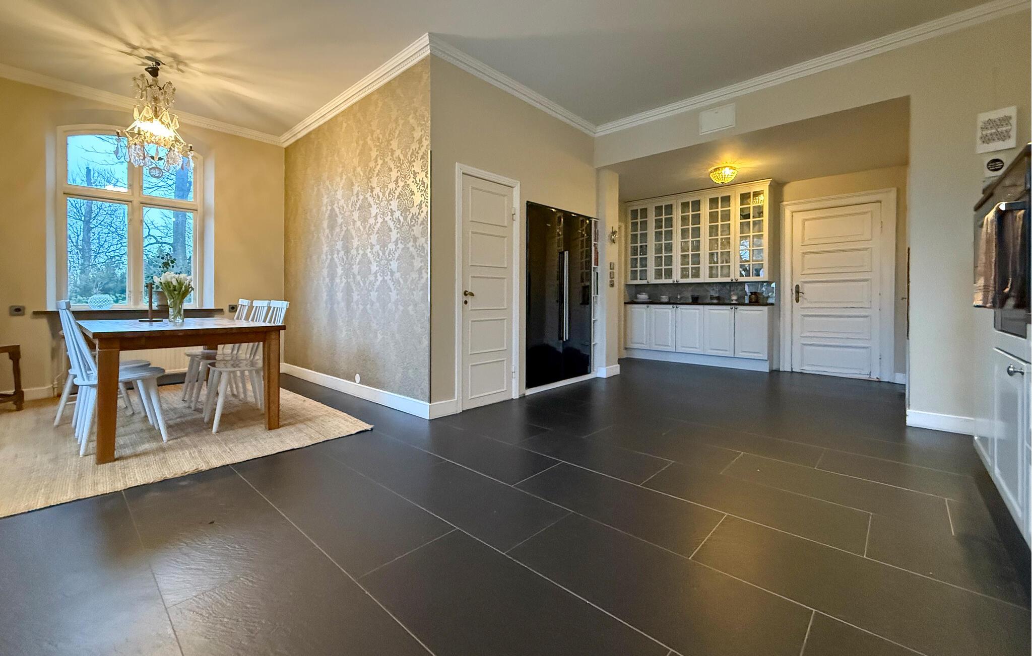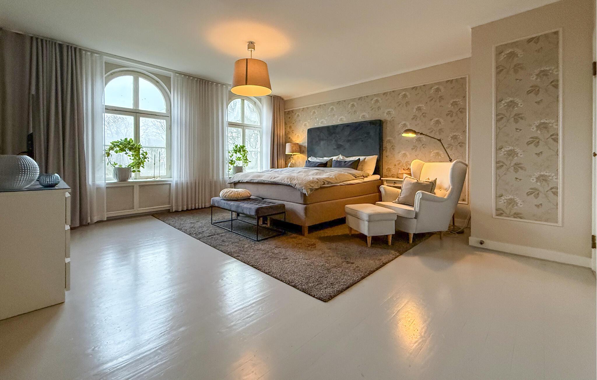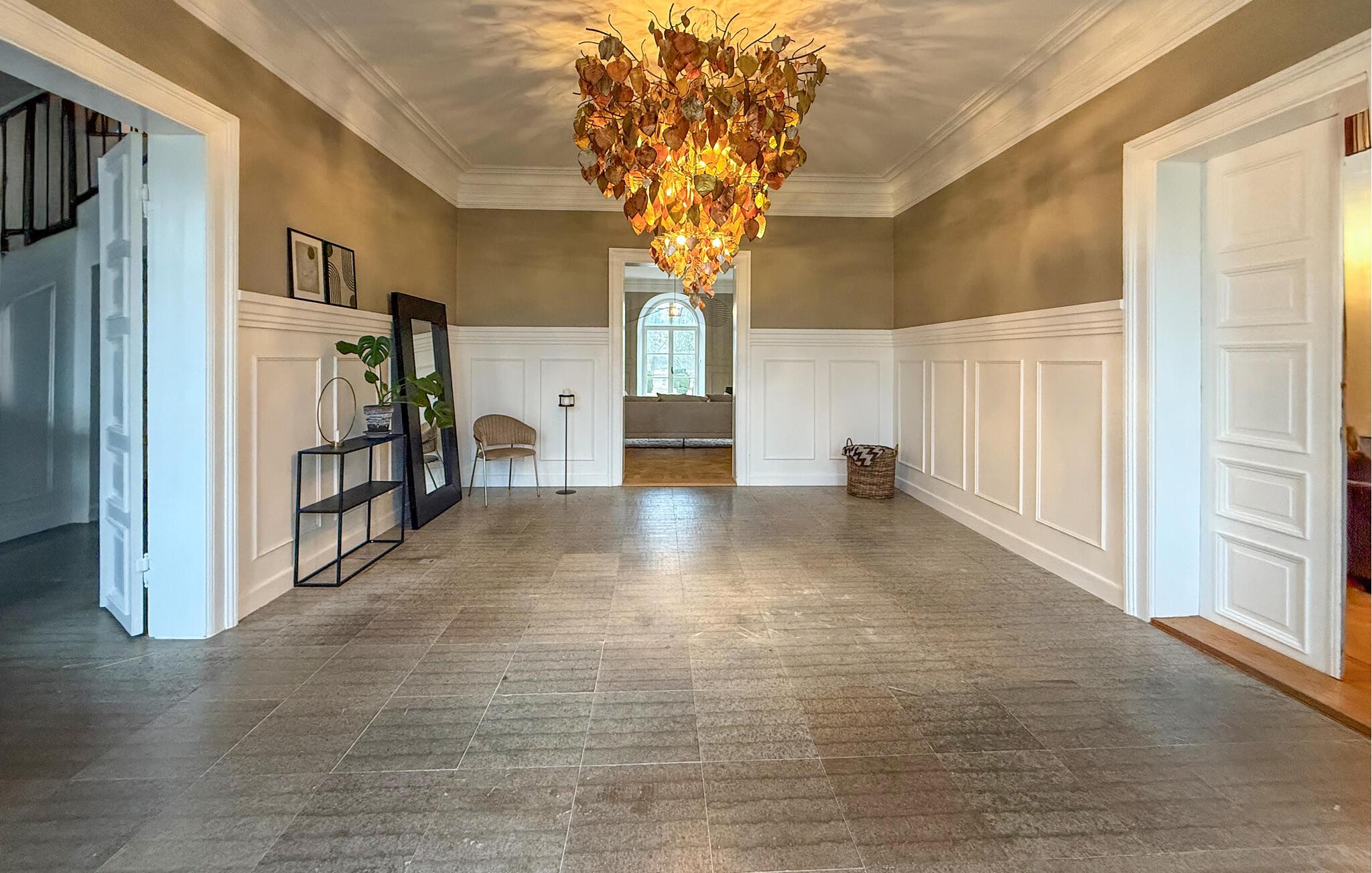 Beliggende kun få kilometer uden for Ekeby byder denne ejendom på fred, elegance og generøs komfort samt landlig idyl og nærhed til adskillige attraktioner. Gå ind i de stilfulde værelser og føl jer som en kongelig. De høje lofter, rummelige vinduer og elegante trægulve giver huset en eksklusiv atmosfære. Føl jer godt tilpas i stuen på de komfortable sofaer foran brændeovnen og nyd omgængelige aftener med familie eller venner. Den imponerende spisestue med lysekroner og et langbord lægger op til at nyde festlige måltider. Tilbered lækre retter i det rummelige landkøkken og nyd den unikke atmosfære.