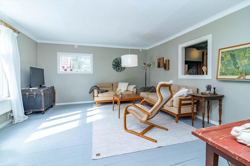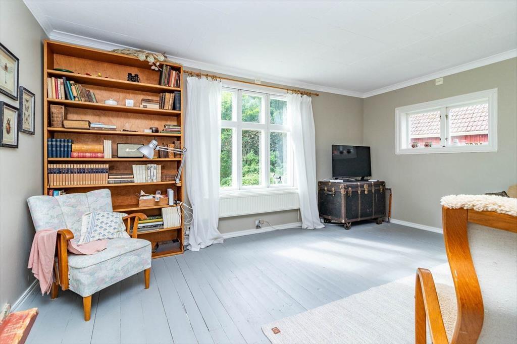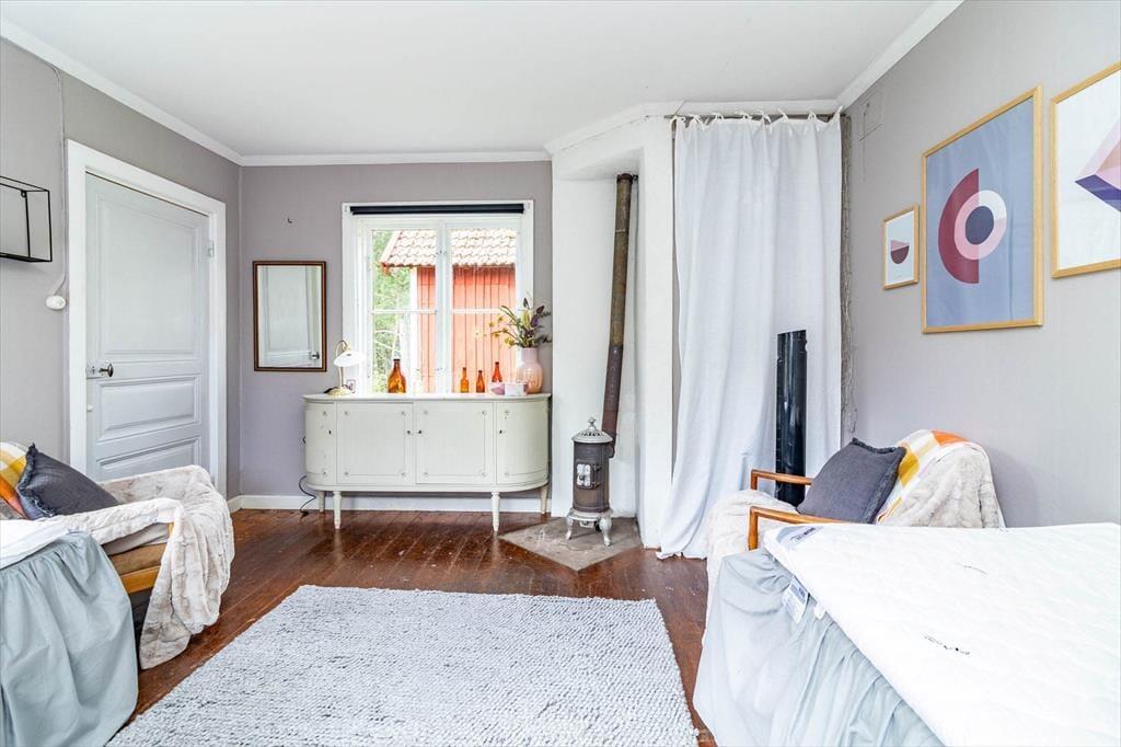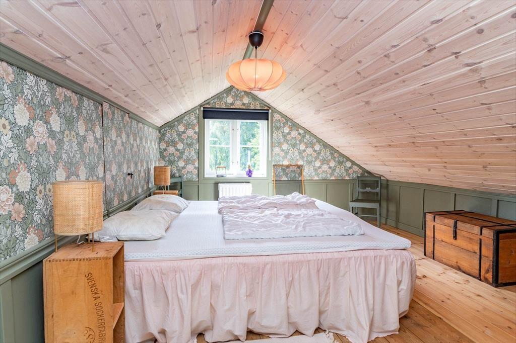 På førstesalen er der to soveværelser: ét med dobbeltseng og ét med to enkeltsenge. I det lille gæstehus er der et soveværelse med to enkeltsenge. Udendørsområderne omfatter en overdækket terrasse, havemøbler, grill og parkeringsmulighed på grunden. Der står også en robåd til rådighed.