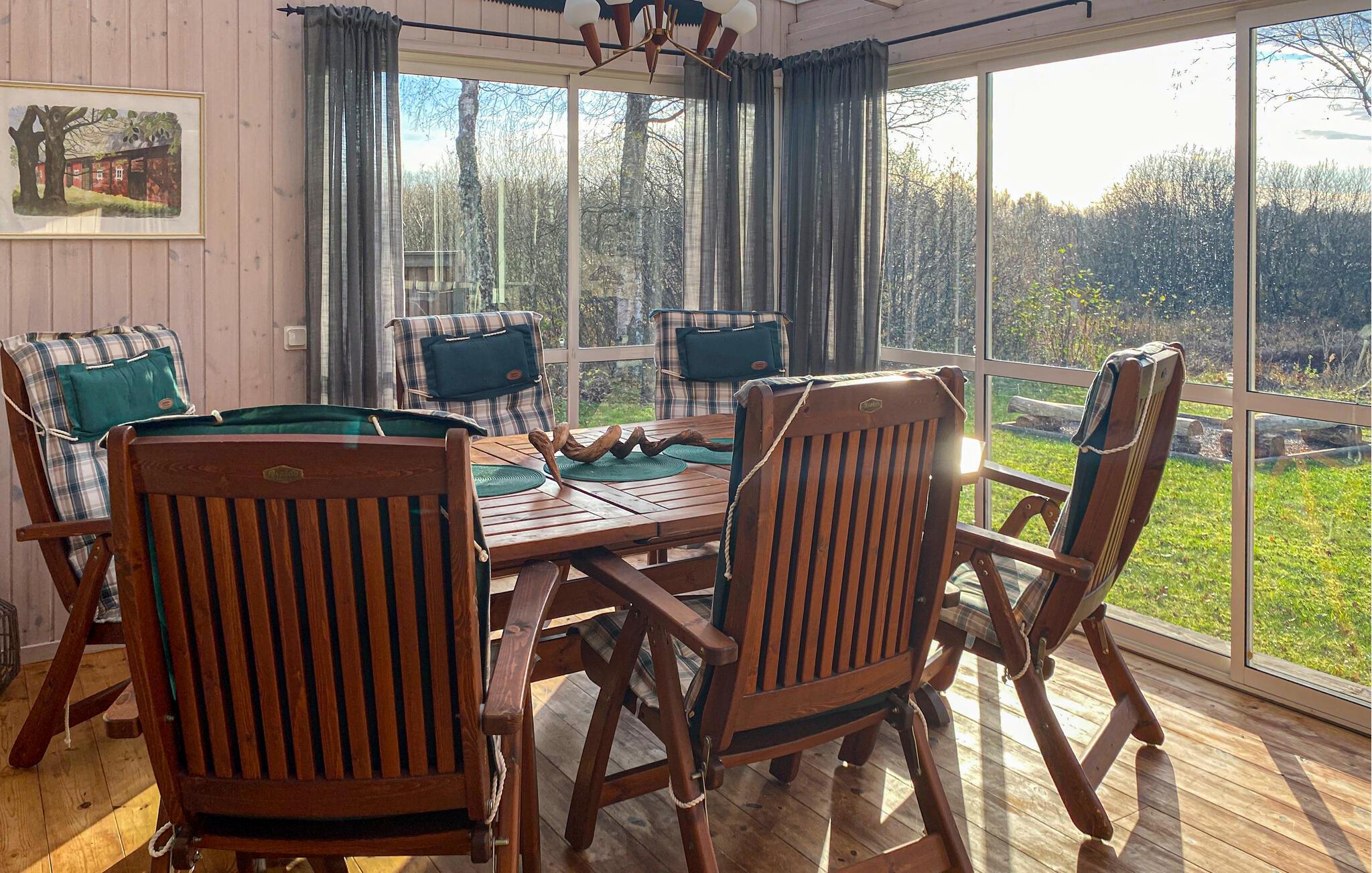 Dette idyllisk beliggende feriehus venter på jer til en ferie lige ved søen. Beliggende i en grøn oase ved bredden af Kyrksjön, er jeres feriehus det perfekte sted at undslippe hverdagens travlhed. Indenfor finder I en varm og hyggelig atmosfære med masser af træ og charmerende detaljer. Slap af i den indbydende stue med komfortable lænestole og en brændeovn, der skaber en hyggelig atmosfære på kølige aftener. Det store, lyse køkken med tilhørende spiseplads har alt, hvad I behøver til fælles måltider. Udestueområdet, med sine store vinduer, tilbyder en vidunderlig udsigt over det omkringliggende grønt og inviterer jer til at slappe af i al slags vejr. Gå ud på terrassen og lad blikket vandre over søen. Nyd jeres morgenkaffe i solen, læs i en liggestol, eller tilbered en middag under åben himmel på grillen. Tag en tur ud på søen for at fiske eller oplev blot roen ved vandet. Om aftenen kan I afslutte dagen hyggeligt omkring bålstedet. Området omkring Vissefjärda byder på mange muligheder for udflugter og aktiviteter. Spil golf på den nærliggende golfbane, gå en tur i skovene, eller besøg kystbyen Kalmar med dens slot og charmerende butikker. En tur til øen Öland er også umagen værd, ligesom et besøg i Glasriket, hvor I kan opleve traditionelt håndværk på første hånd.