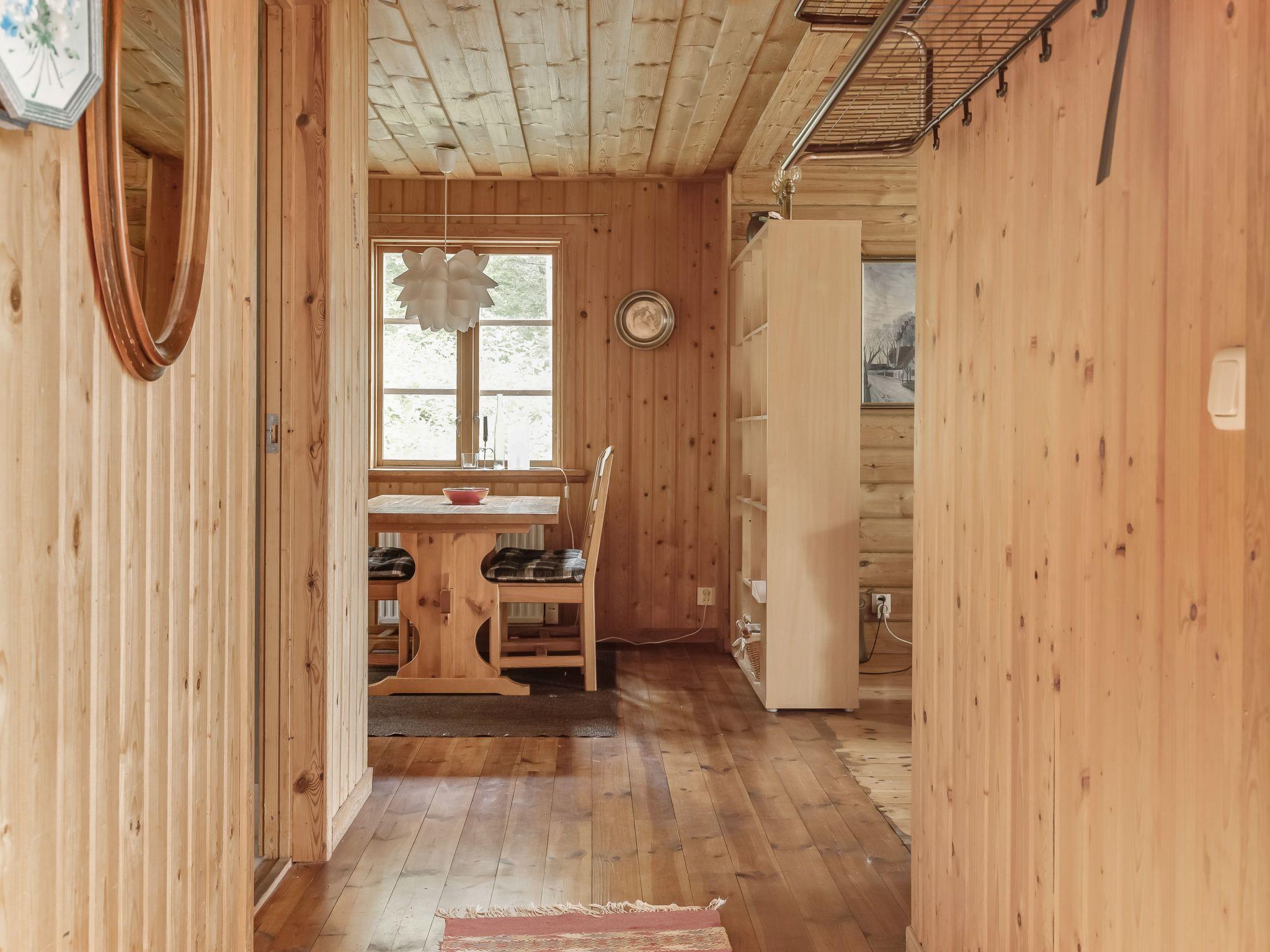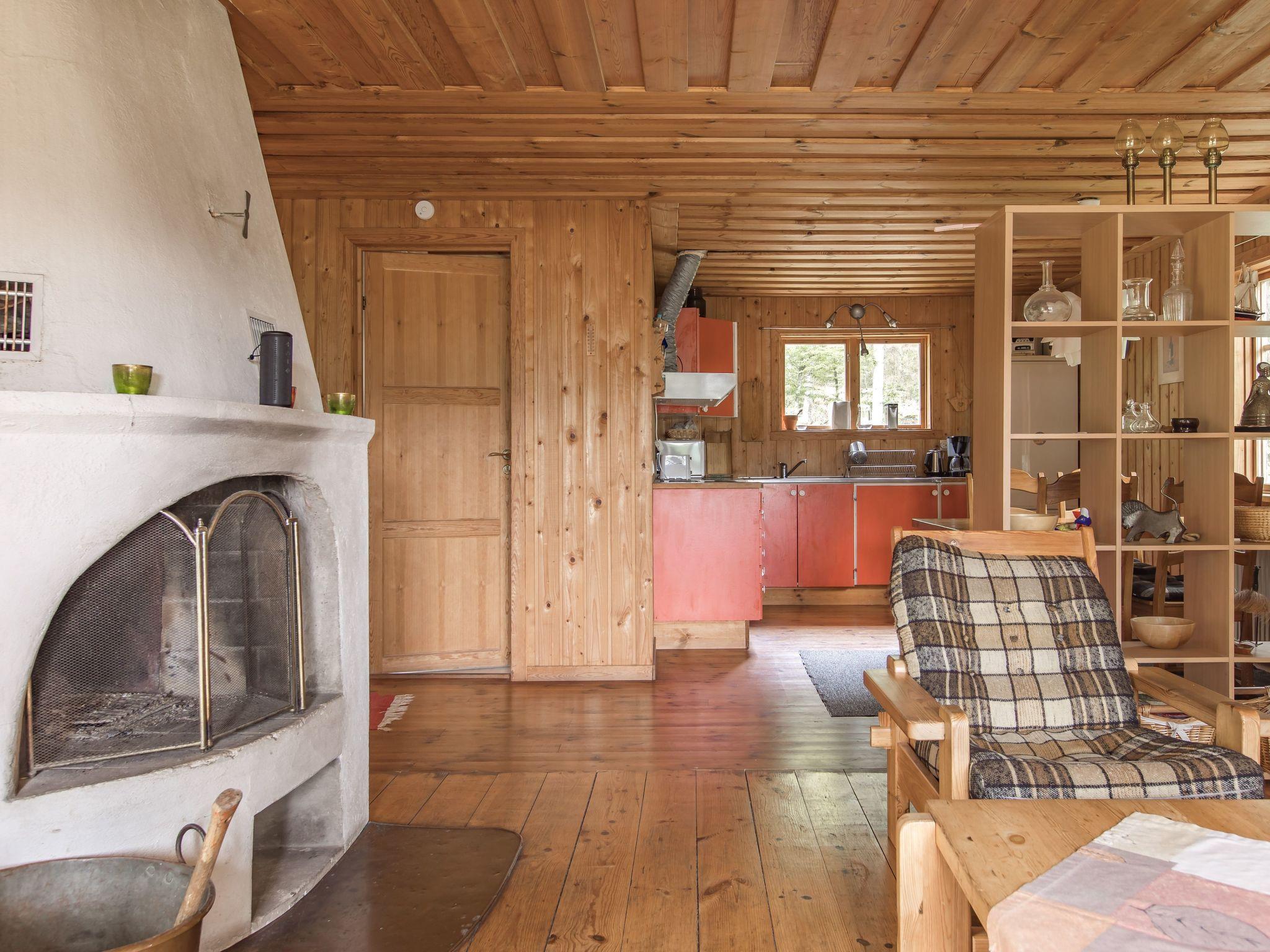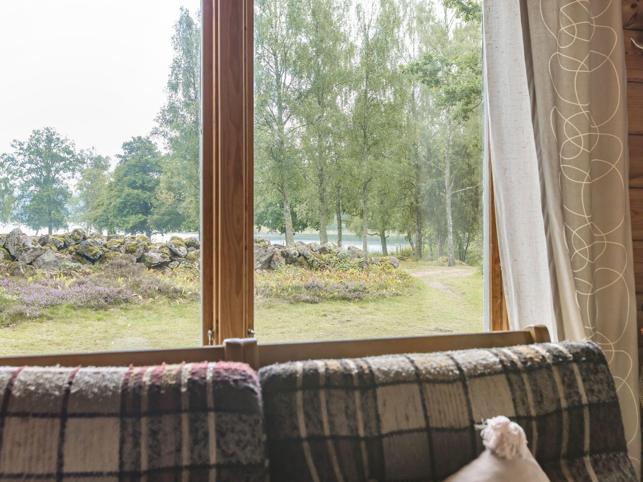 "Ängsjömåla", 3-room house 60 m2. Cosy and wooden furniture furnishings: living/dining room with open-hearth fireplace, dining table and satellite TV. Exit to the veranda. 1 room with 1 double bed. 1 room with 1 x 2 bunk beds. Small, open kitchen (4 hot plates, oven, toaster, kettle, microwave, freezer, electric coffee machine). Shower/WC. Electric heating. Wooden floors. Terrace furniture, barbecue (portable). View of the lake. Please note: non-smoking house. Smoke alarm, fire extinguisher. Freezer approx. 70 l.