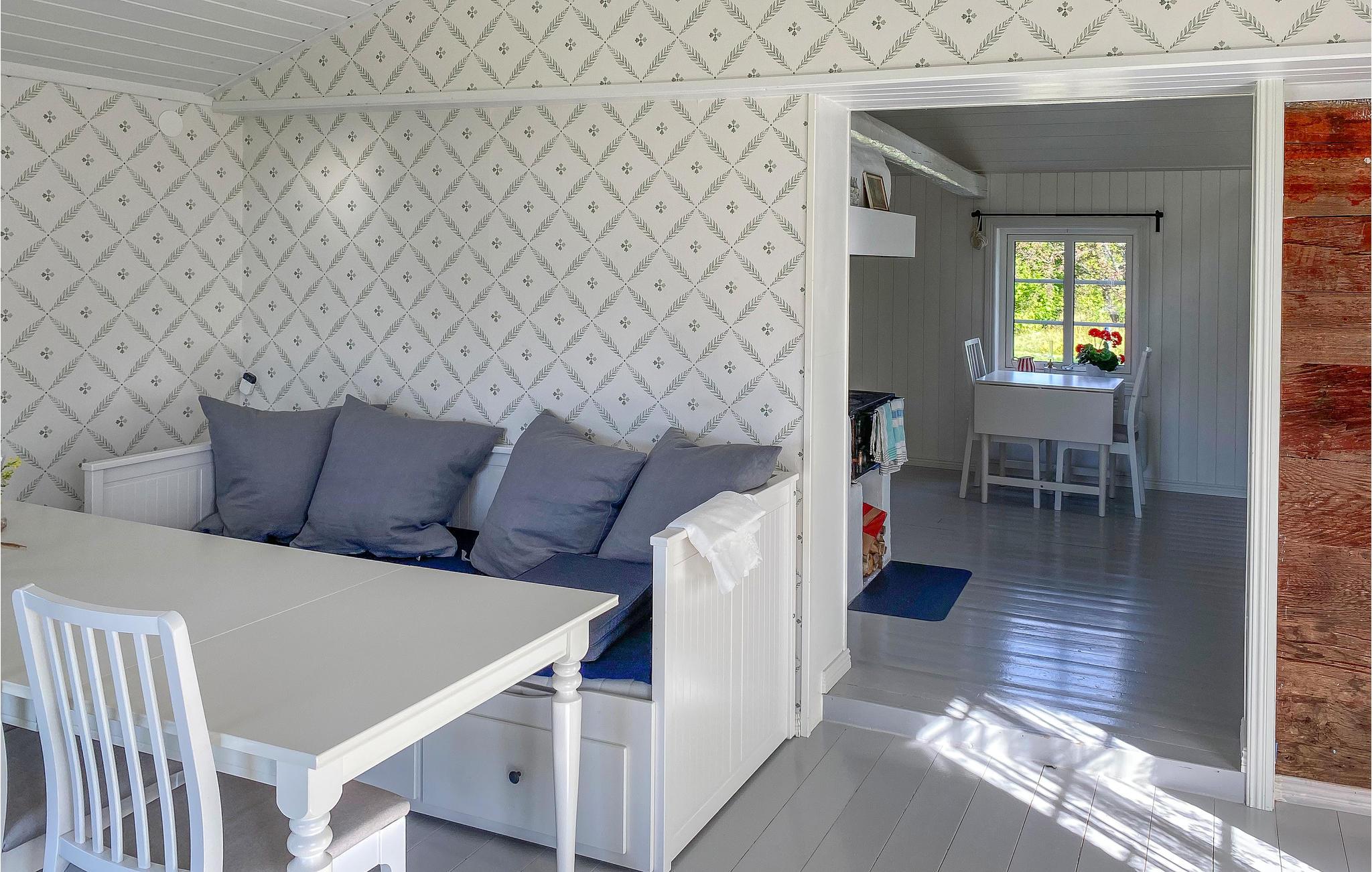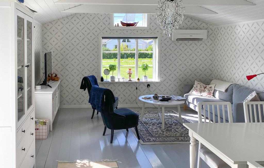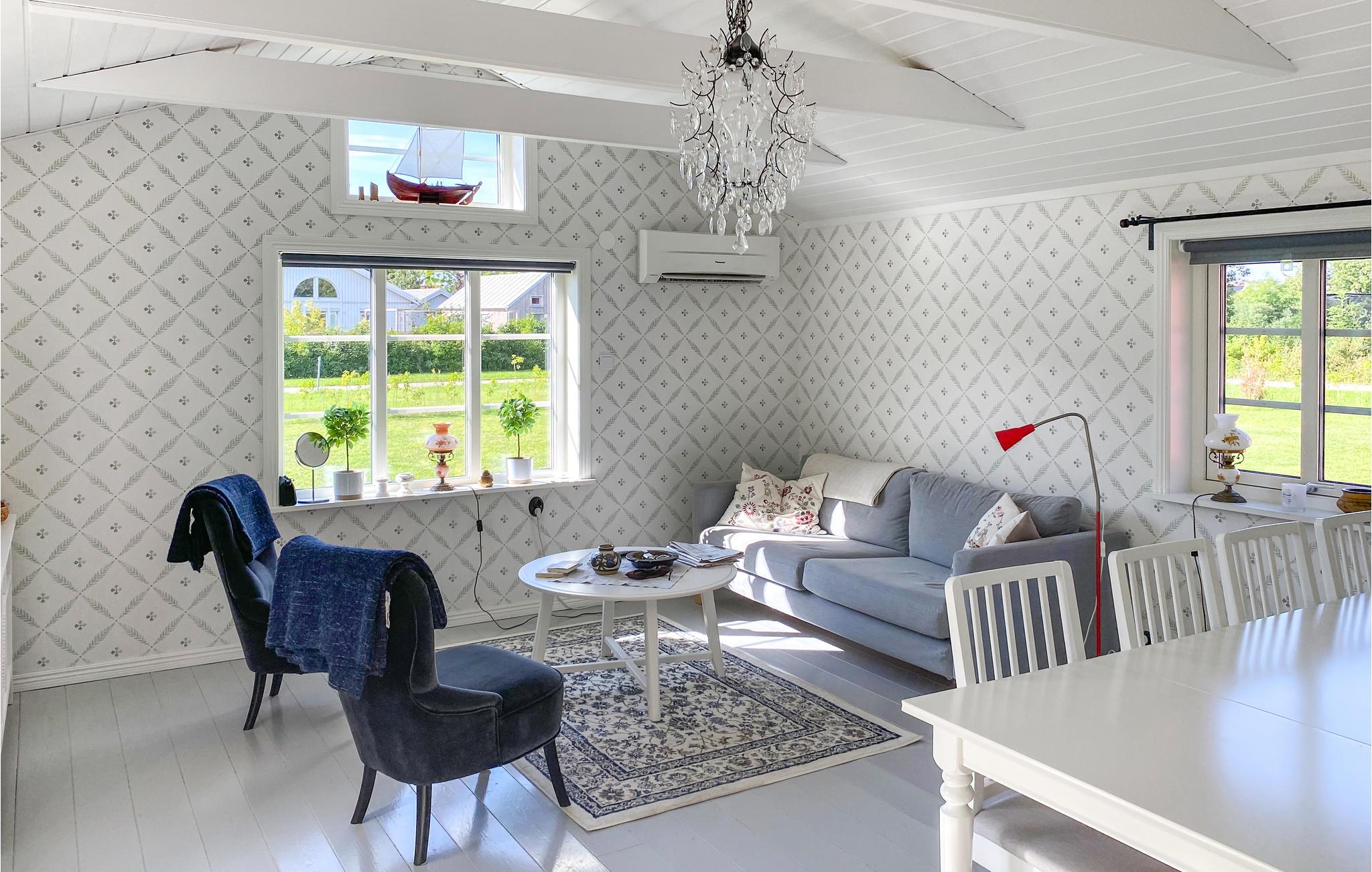 Rejs til øen Øland og tilbring en dejlig ferie i dette hyggelige feriehus. Det giver jer plads til at føle jer hjemme indenfor og også på terrassen. Stilfuldt tapet og lyse møbler skaber en god atmosfære. Kobbergryder og en gammel ovn skaber også en hjemlig atmosfære.
