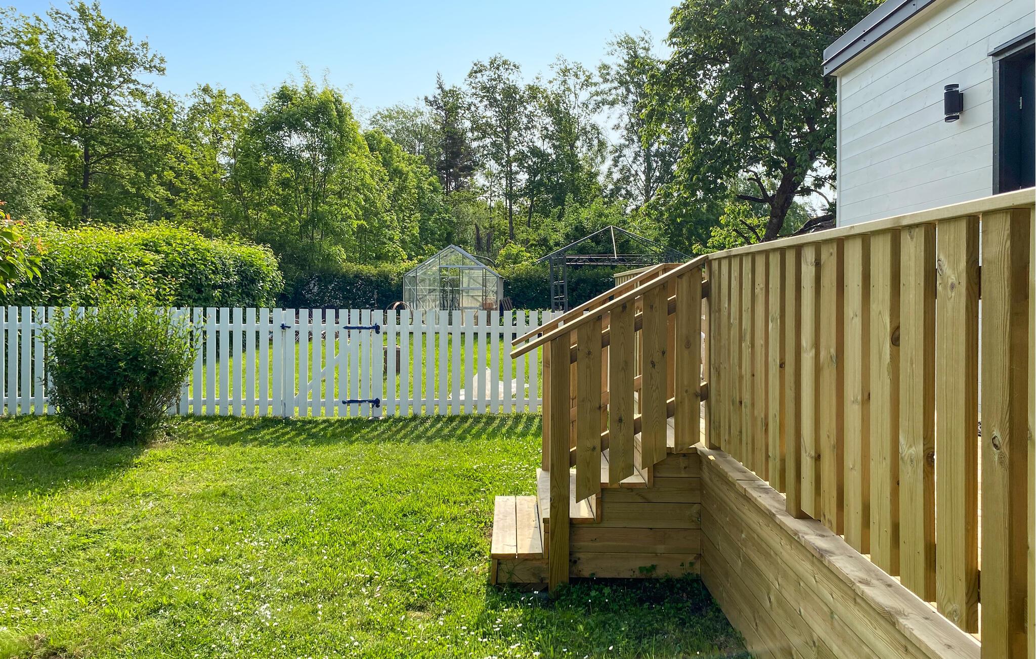 På solrige dage kan I begynde dagene med en solid morgenmad på jeres veranda og nyde den fredfyldte atmosfære under den åbne himmel.