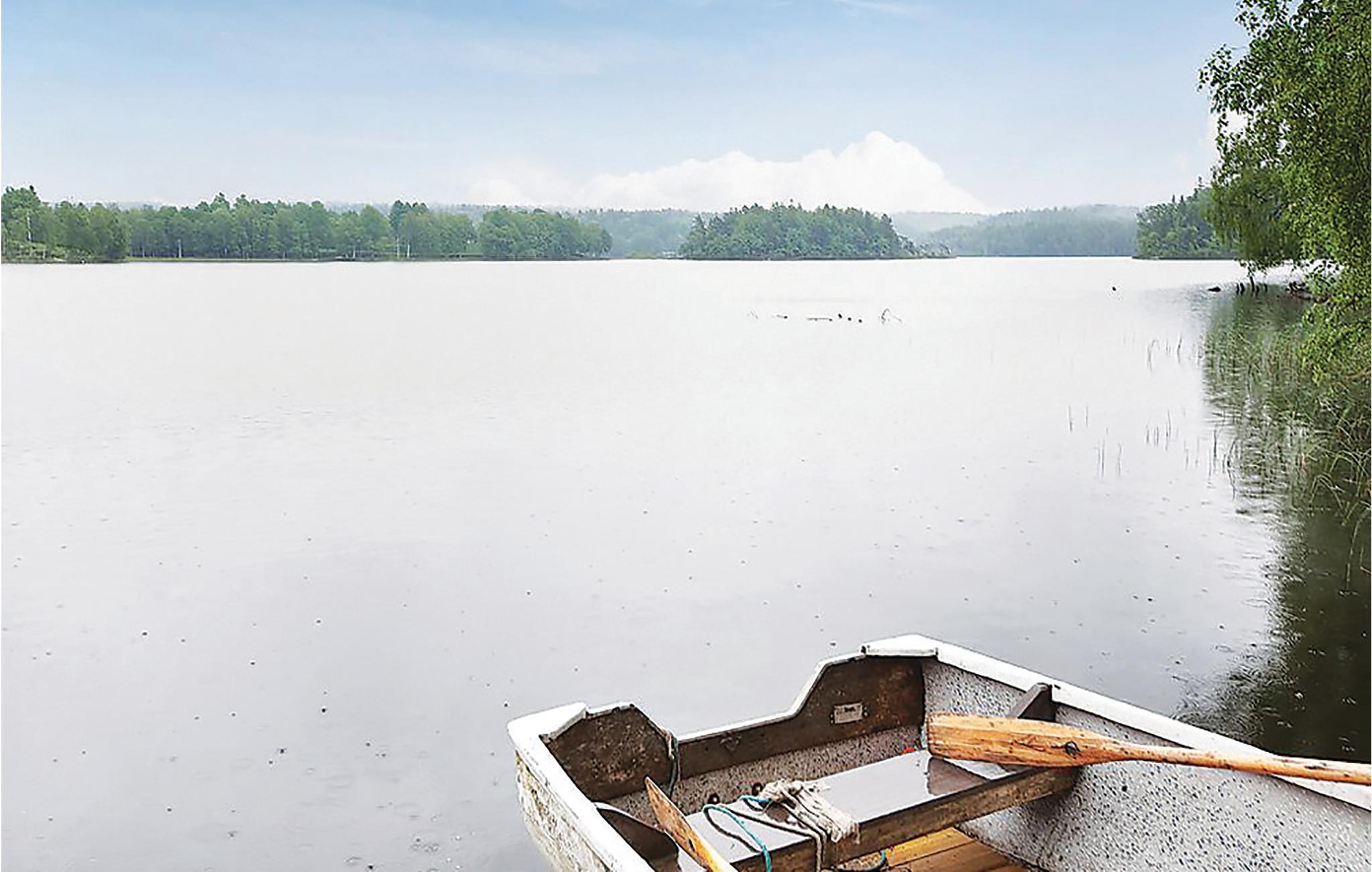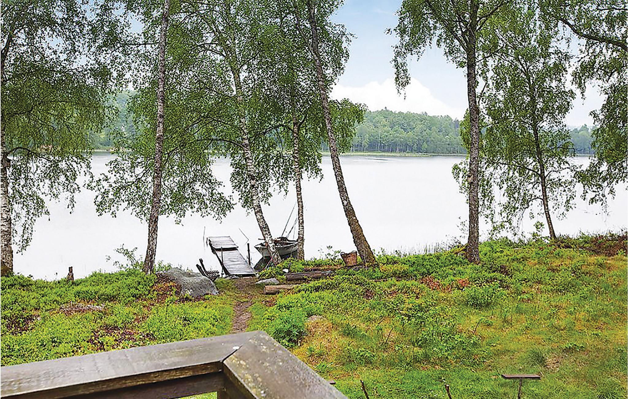Hyggeligt træhus med udsøgt og privat beliggenhed på stor søgrund - her er der dømt ro og afslapning for alle pengene. Terrasse med søudsigt; det oplagte sted til morgenkaffen eller et godt glas vin under aftensolen, men I planlægger dagens/morgendagens program. Egen anløbsbro. Badepladsen 300 m væk nås med båden. Her kommer i virkelig helt tæt på vandet! Dybboret brønd.