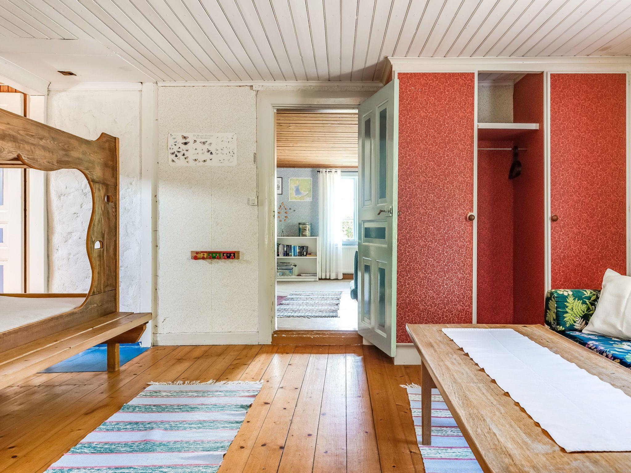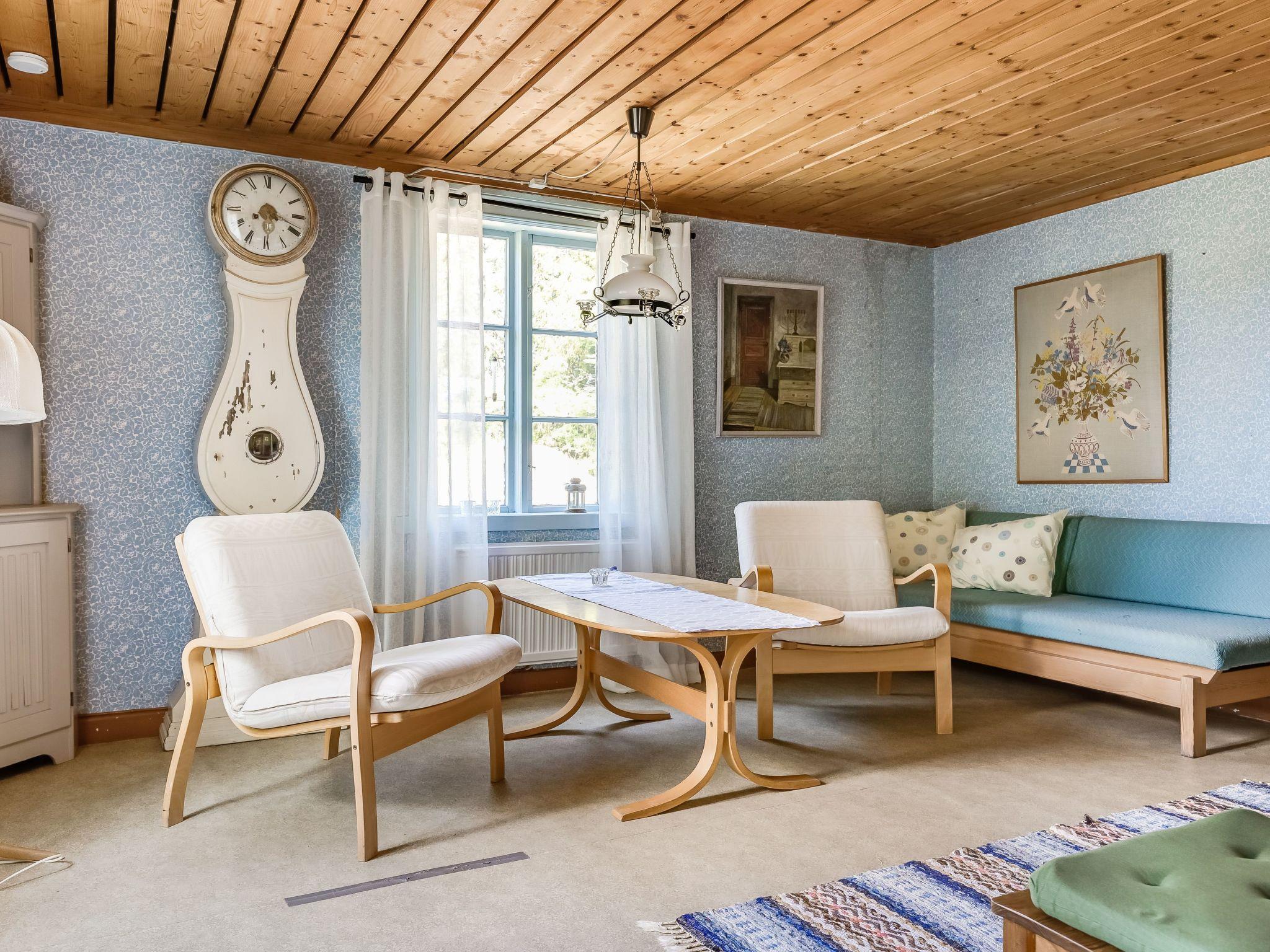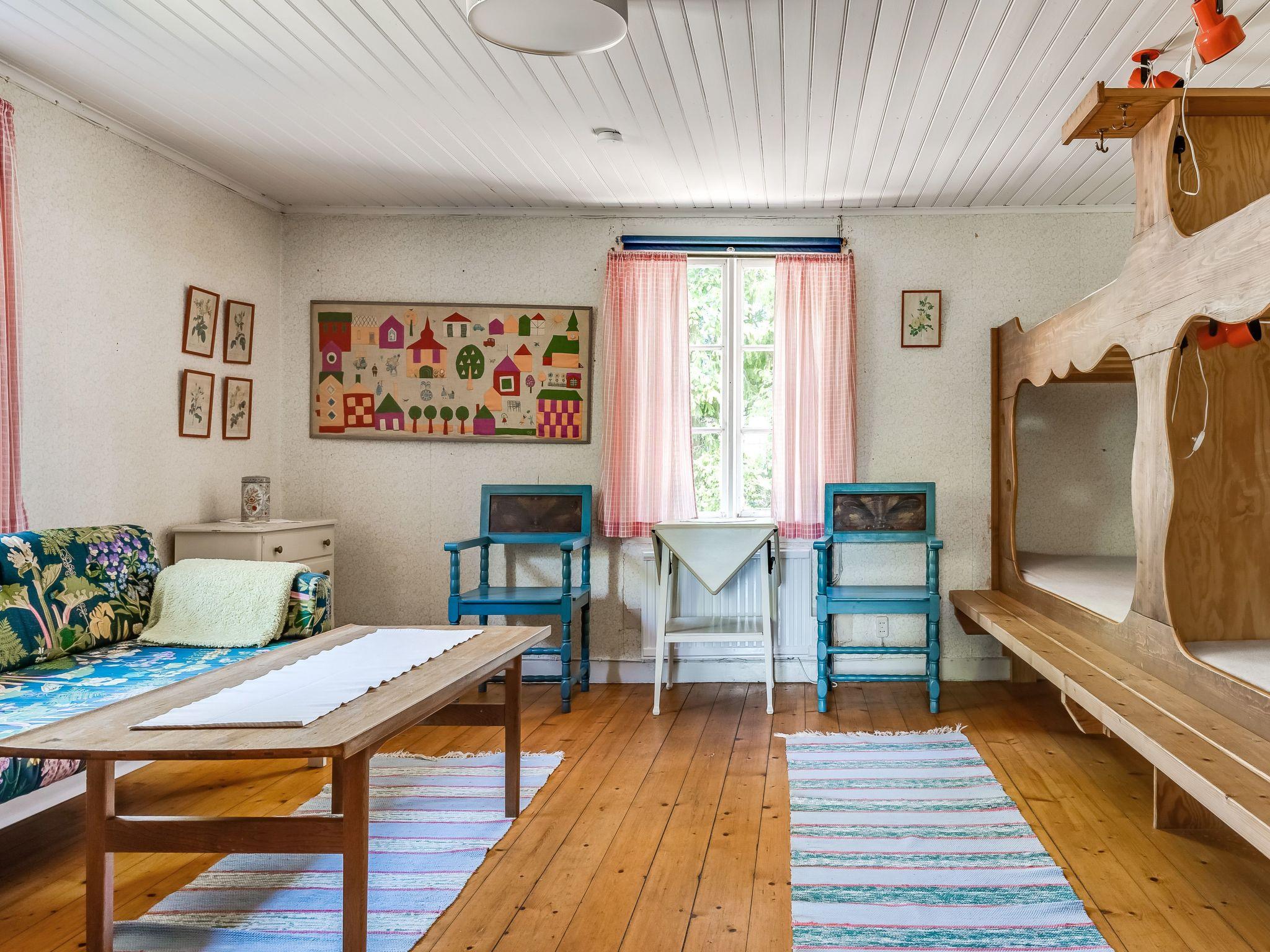 "Ebbabolet", 2-room house 48 m2. Simple furnishings: living/sleeping room with 1 bed and open-hearth fireplace. 1 room with 2 x 2 bunk beds (80 cm, length 190 cm), shower/WC. Kitchen (2 hot plates, mini-oven, toaster, kettle, microwave, electric coffee machine) with Scandinavian wood stove (only for decoration), dining table. Electric heating. Wooden floors. Terrace furniture, barbecue (portable). Facilities: children's high chair, baby cot. Please note: fridge without freezer, non-smoking house. Maximum 2 pets/ dogs allowed. Smoke alarm, fire extinguisher. Bed layout is flexible. There are more sleeping options available than the maximum number of people allowed which may, however, not be exceeded. Instead of an enclosed bedroom, some sleeping areas are located in an open-plan area (gallery, alcove, etc.). Tibro Ebbabolet 1:1