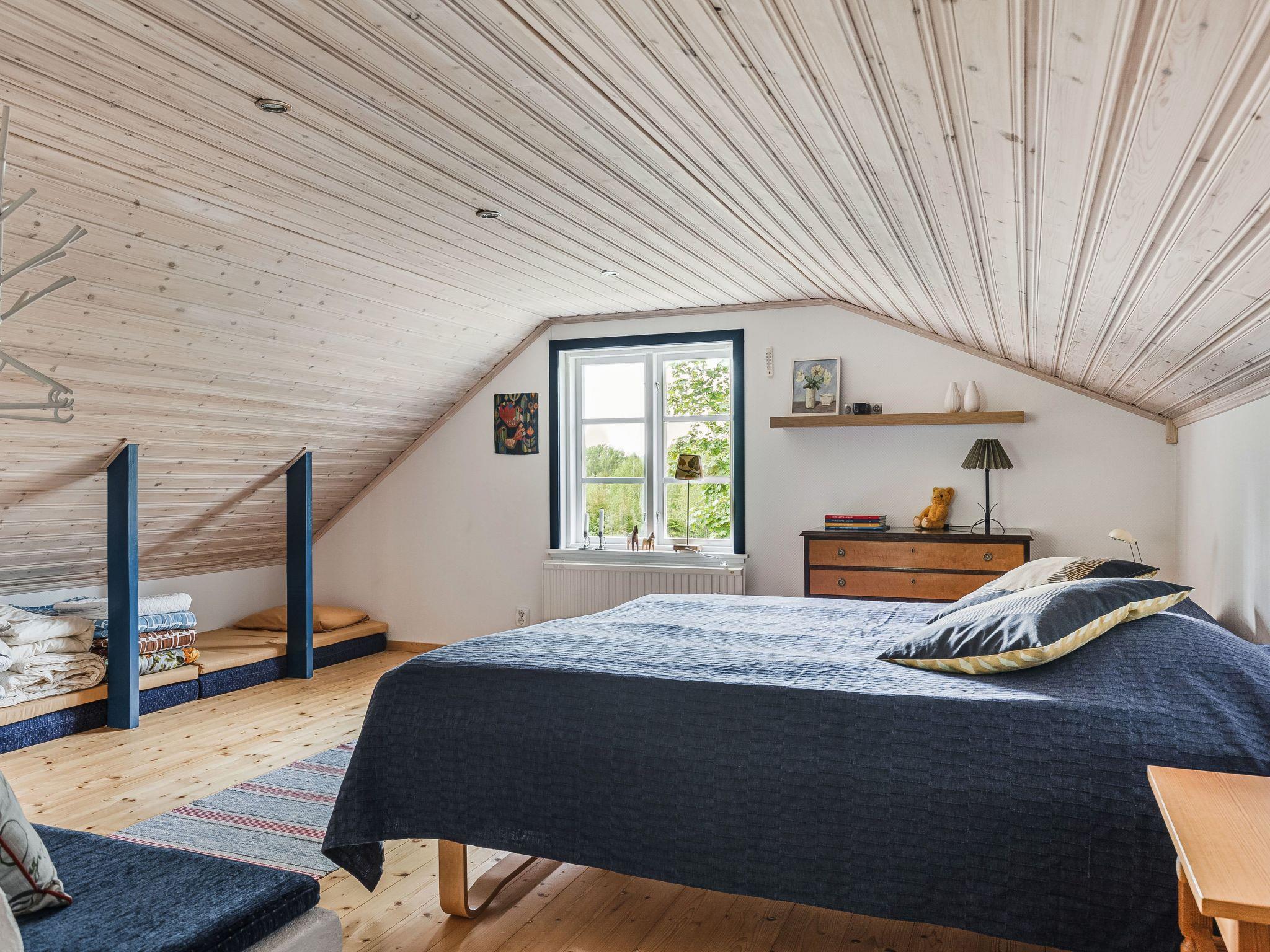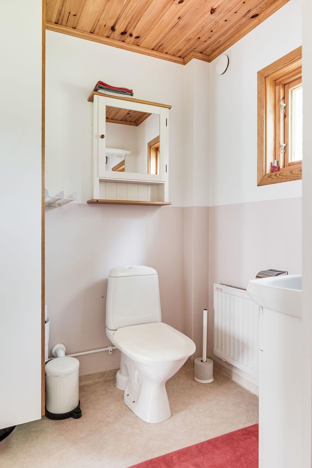 "Smedstorp", 3-room house 75 m2 on 2 levels. Object suitable for 2 adults + 2 children. Cosy furnishings: living/sleeping room with 1 double sofabed and open-hearth fireplace. Living/dining room with open-hearth fireplace. Kitchen-/living room (2 hot plates, mini-oven, dishwasher, toaster, kettle, microwave, freezer, electric coffee machine) with wood-burning stove. Shower/WC. Electric heating. Upper floor: (steep stair) open living/sleeping room with sloping ceilings with 1 double sofabed and 1 double bed. Wooden floors. Terrace furniture, barbecue. View of the forest. Facilities: iron, children's high chair, baby cot for up to 2 year olds. Please note: non-smoking house. Smoke alarm, fire extinguisher. Bed layout is flexible. There are more sleeping options available than the maximum number of people allowed which may, however, not be exceeded.