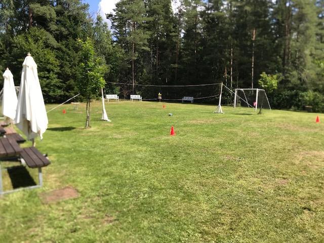 Stor grund på hele 10.000 m2 og masser af plads til leg og spil. Der er 2 fodboldmål på en stor græsplæne. Der er plads til at spille volleyball, badminton etc. Stor bålplads (åben ild), 3 grill, borde, stole og bænke. Der er nogle cykler på stedet, som I gerne må låne, men ejeren kan ikke garantere for, at de er klar til brug.