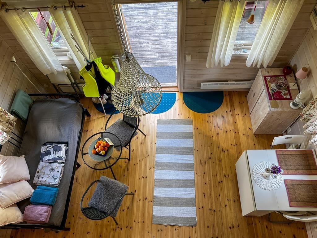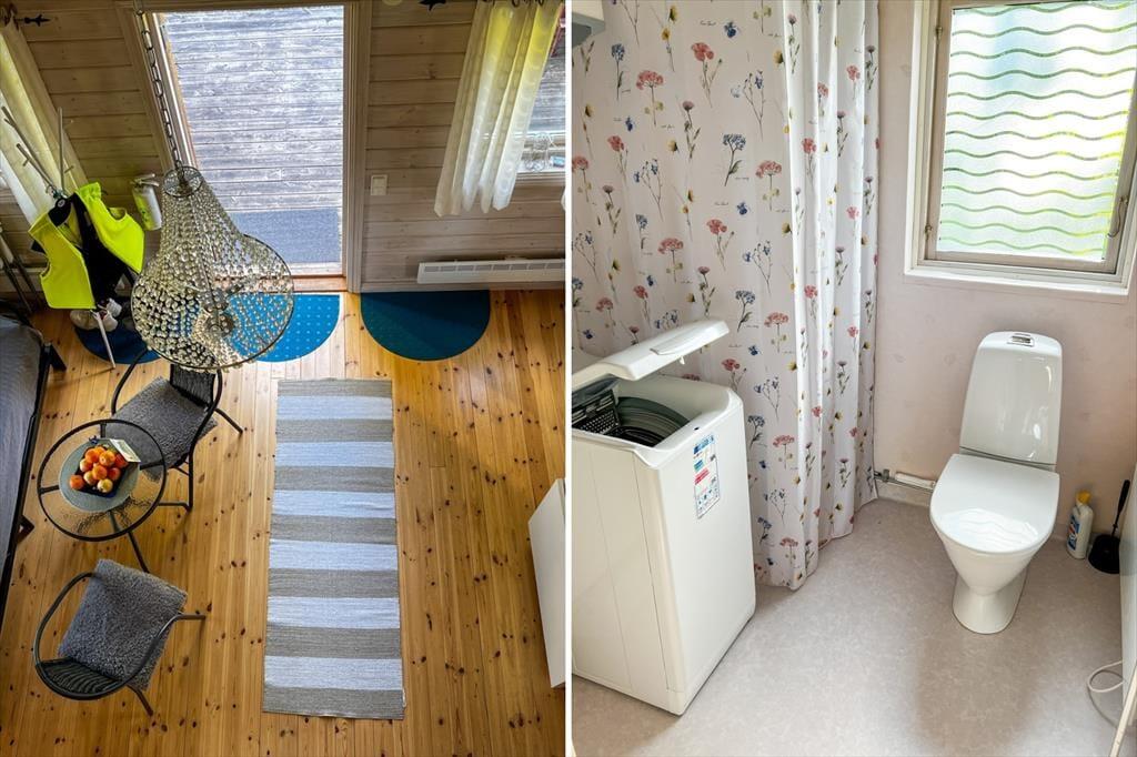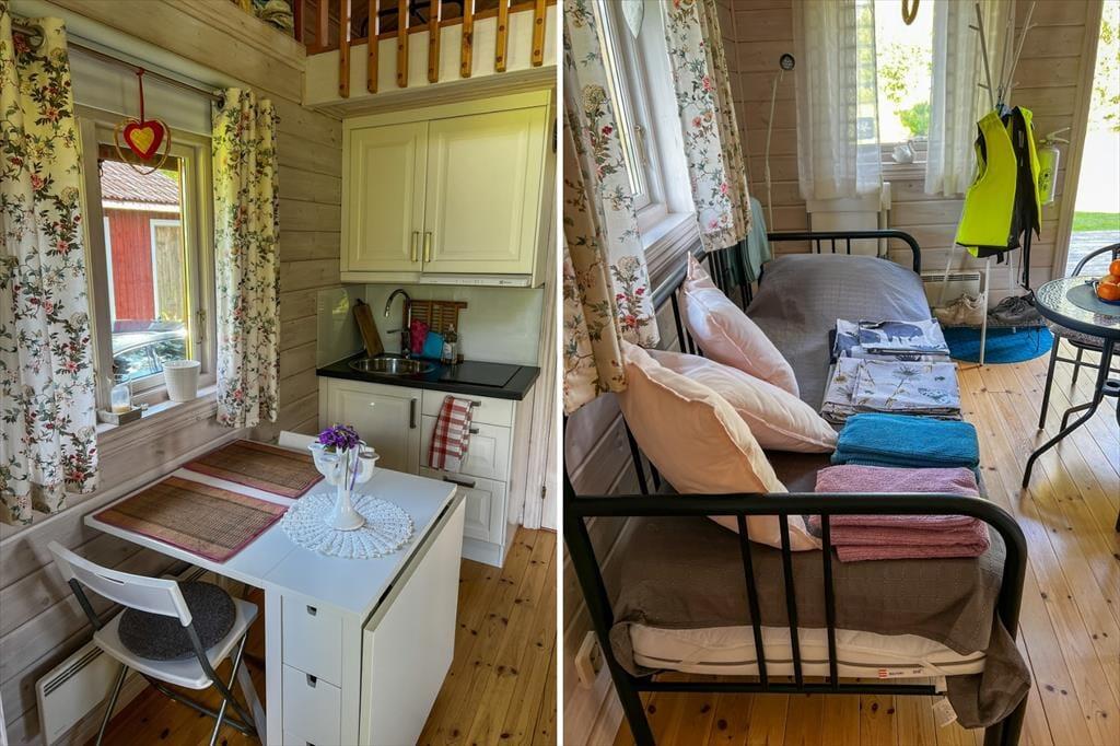 Det 2013-opførte feriehus tilbyder omkring 35 kvadratmeter boligareal og plads til op til fem personer. Det åbne køkken er udstyret med et 2-kogepladers komfur, mikrobølgeovn, airfryer, køleskab med fryser, kaffemaskine og spisebord. En højstol til børn er også tilgængelig. I opholdsområdet finder man en siddegruppe til to samt en sovesofa til to personer. Soveværelset har en enkeltseng, og på hemsen med stejl trappe og delvist begrænset loftshøjde er der yderligere to enkeltsenge. Badeværelset er udstyret med bruser, toilet, rindende varmt vand og vaskemaskine.