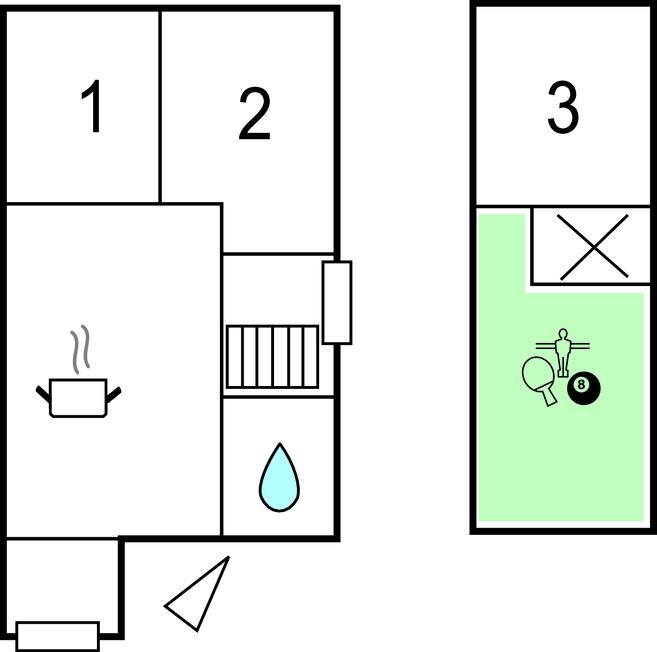 Soveværelse (nr. 1) - 2 Sovepladser. (Enkeltseng(e)).