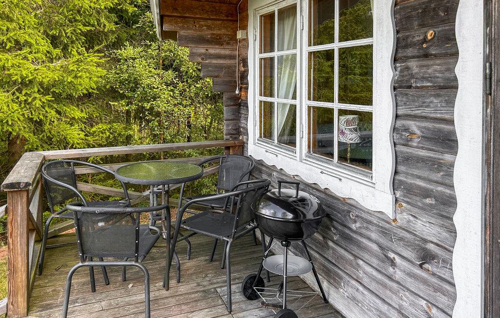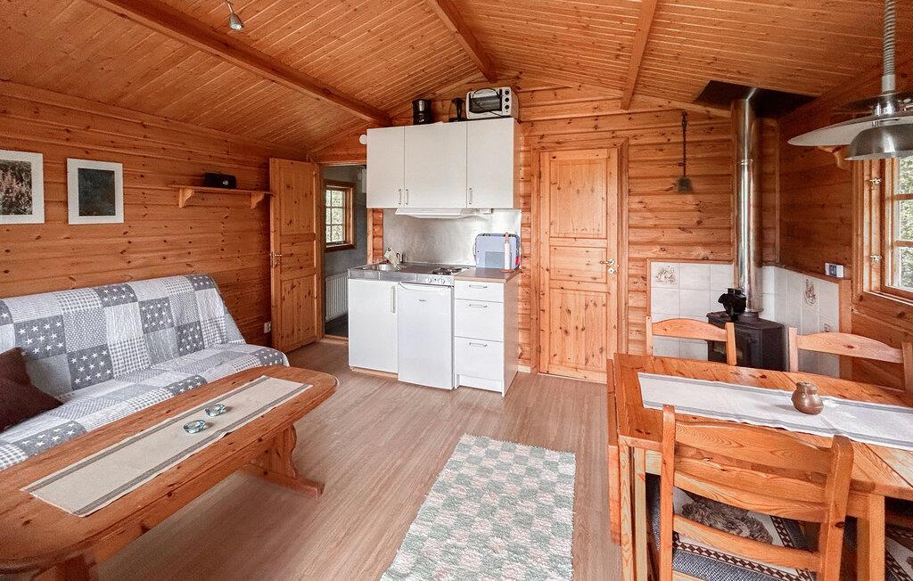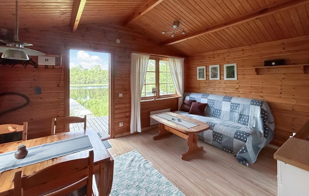 Træhus, der ligger ugenert i skoven ved en lille skovsø. I nærheden af flere fiskerige søer. Legeplads ved Kvarnsjön i gåafstand.Båd, kajak og kano kan lejes. Åben pejs! I søerne Kvarnsjön og Alvhagasjön gælder samme fiskekort og her må kun benyttes elmotor. Til Hallands vestkyst med sandstrande er der kun 50 km og der er 55 km til Halmstad. I Alvhaga er der trådløst gratis internet udenfor kontoret og to andre steder og udenfor Alvhaga Vildmarkslodge. Huset ligger kun 25 km fra Skandinaviens største lavprisvarehus: Gekås i Ullared.