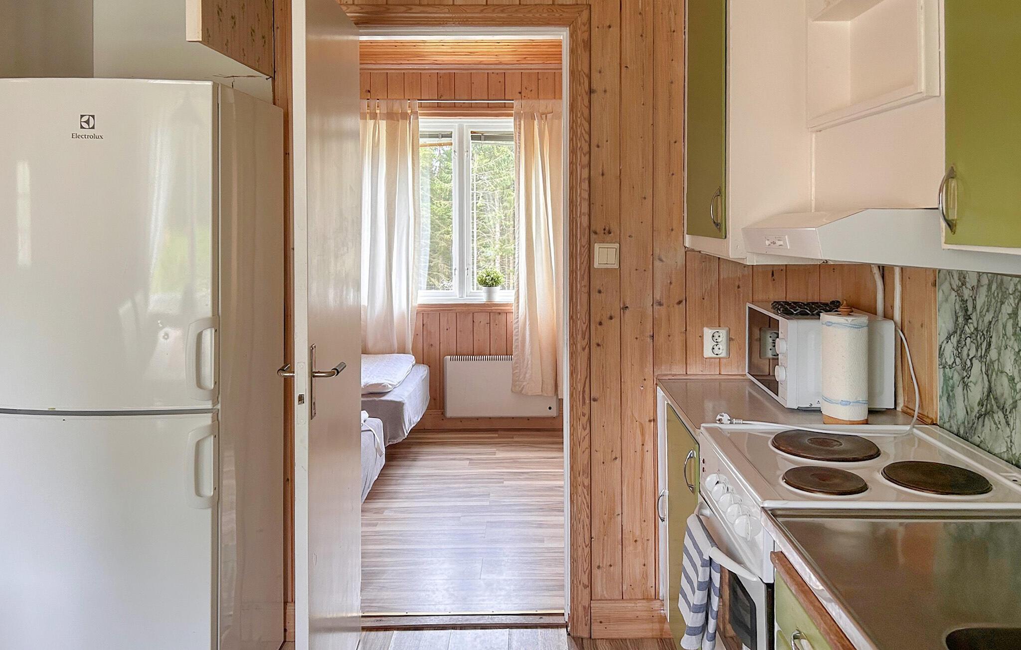 Dette hyggelige hus byder jer velkommen til en idyllisk beliggenhed på en grund, der deles af andre huse, kun få skridt fra Kvarnsjön, som er ideel til svømning og fiskeri. Gør jer selv komfortabel med familien i de praktisk indrettede værelser i dette hus, som lægger op til at tilbringe dejlige stunder sammen tæt på naturen.