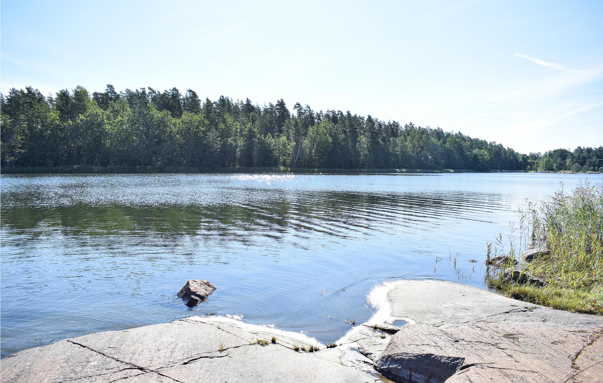 Fra dette fortryllende feriehus kan du gå kun 50 meter over plænen til søbredden med en badestige. Her kan du fiske, bade eller tage en tur ud på vandet med båd.