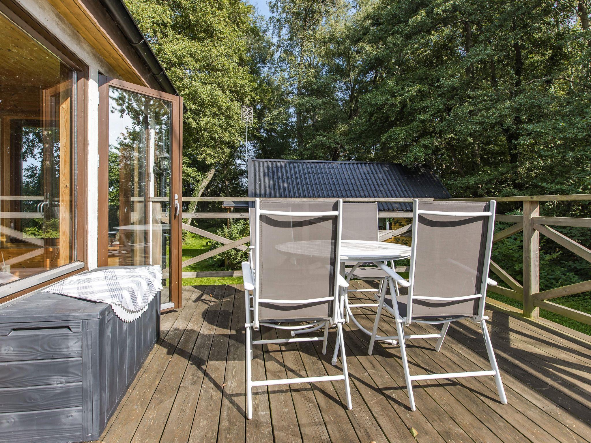 "Kjuge Gula Huset", 3-room house 77 m2. Comfortable furnishings: living room with Scandinavian wood stove and satellite TV. Exit to the veranda. 1 room with 1 double bed. 1 room with 1 x 2 bunk beds. Living room with dining table. Exit to the veranda. Kitchen (3 hot plates, oven, toaster, kettle, microwave, freezer, electric coffee machine). Exit to the veranda. Shower/WC. Electric heating, underfloor heating. Terrace 30 m2. Terrace furniture. View of the lake. Facilities: washing machine. Please note: non-smoking house. Smoke alarm, fire extinguisher. Freezer approx. 100 l.