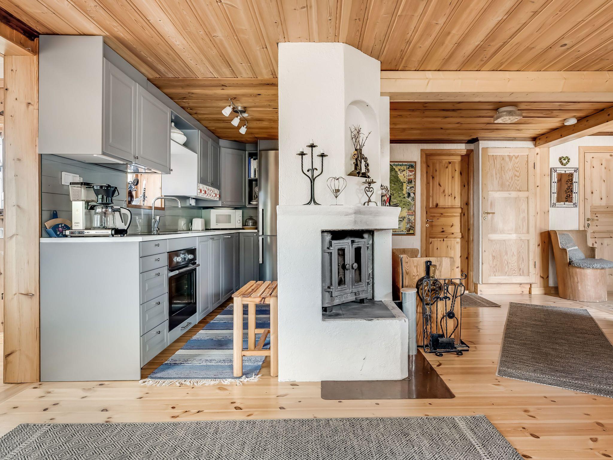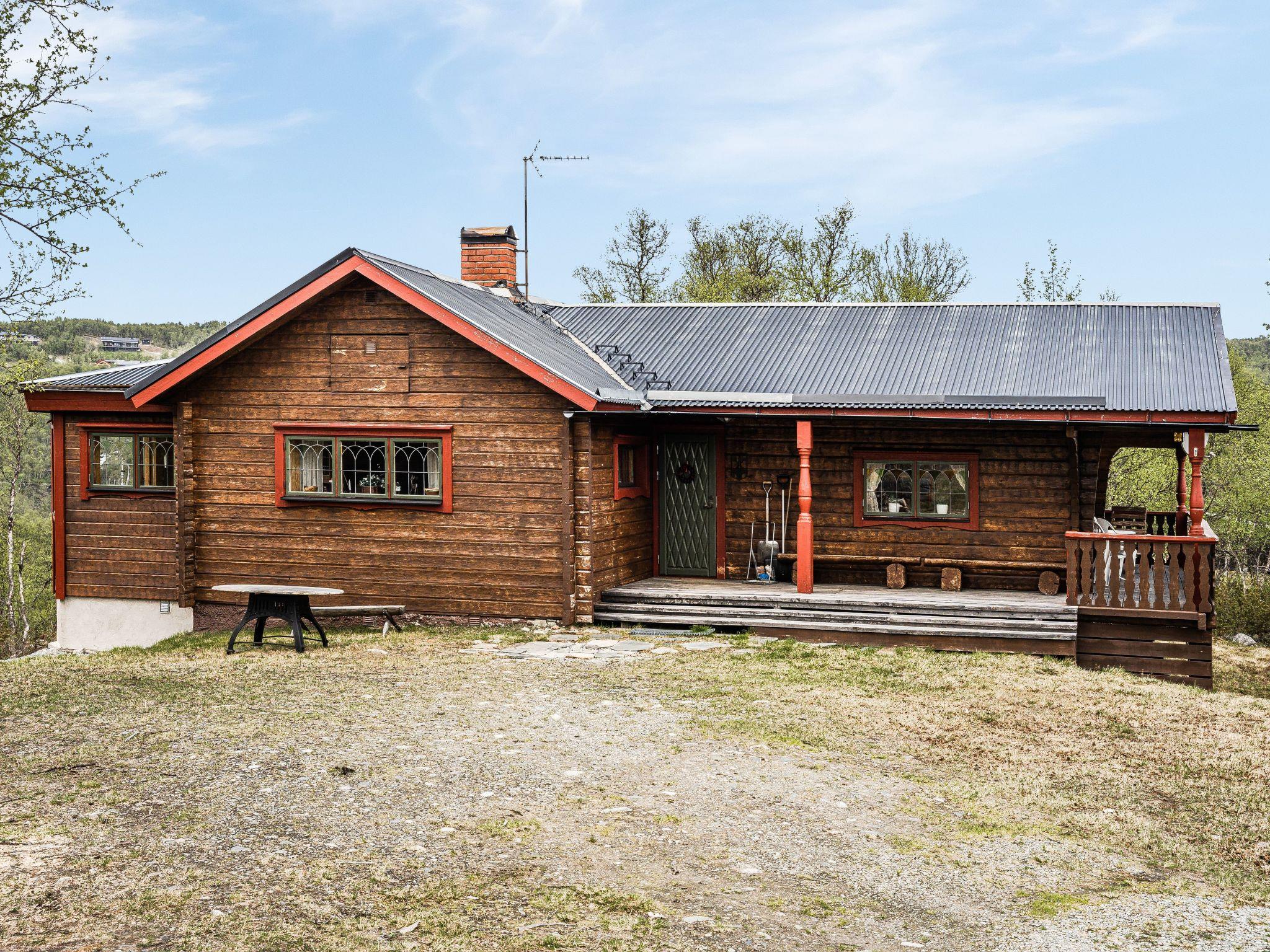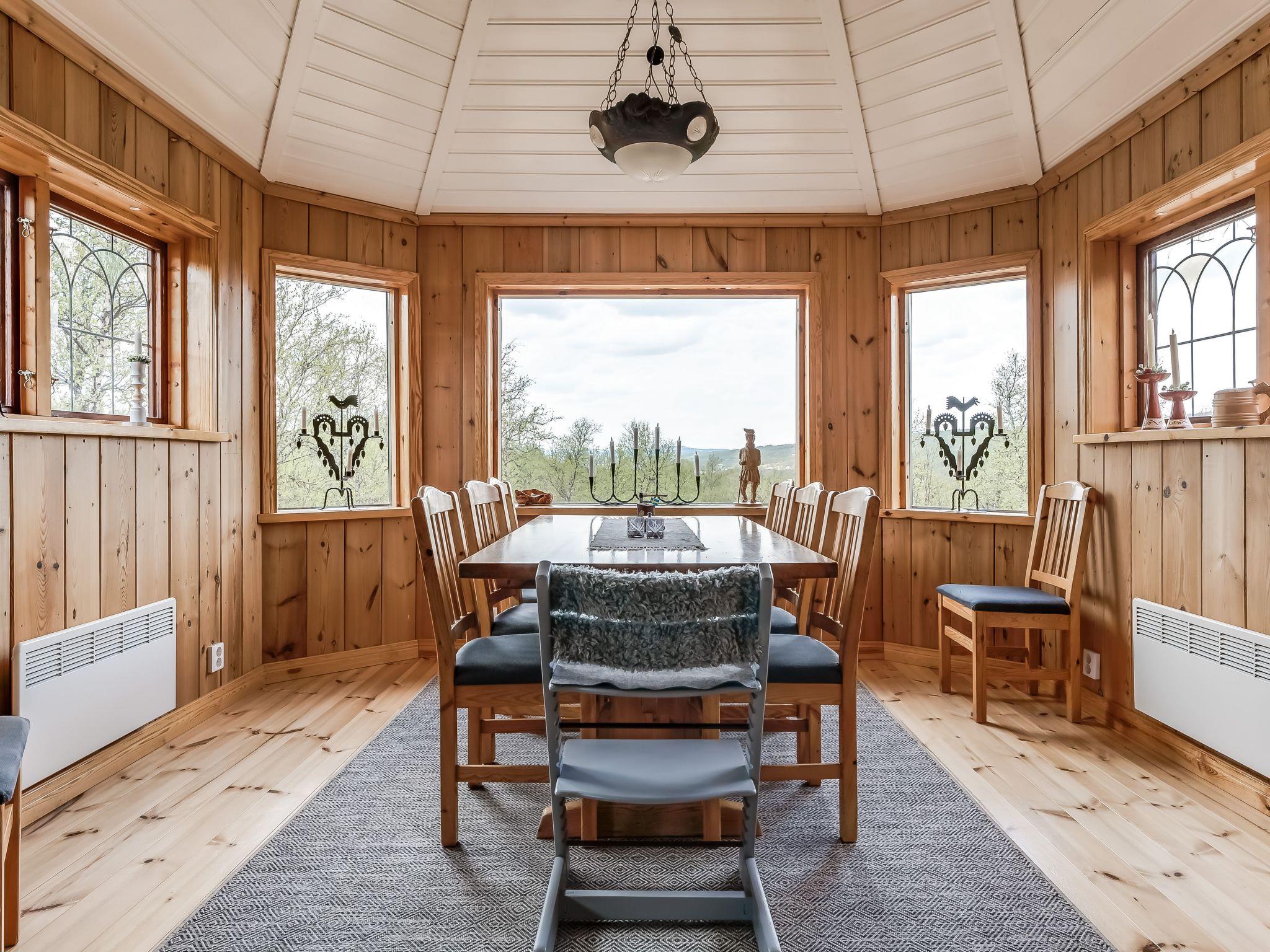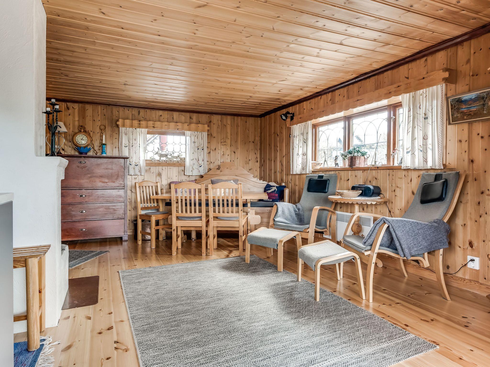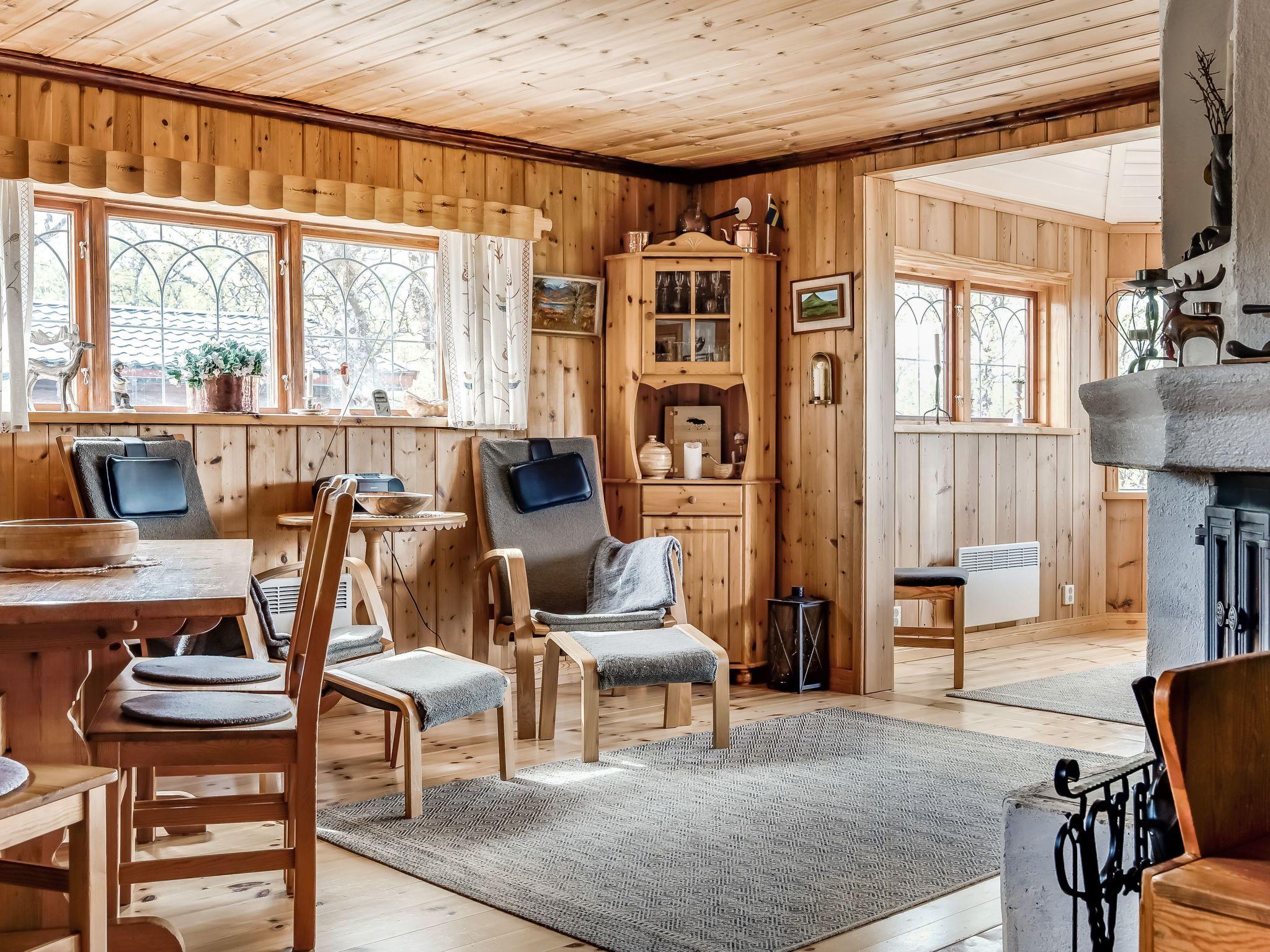 "Fjällnäs", 4-room house 80 m2 on 2 levels. Cosy and wooden furniture furnishings: living/dining room with open-hearth fireplace, dining table, TV and DVD. Exit to the balcony. 1 room with 1 double bed. 1 room with 1 x 2 bunk beds. 1 room with 2 x 2 bunk beds. Open kitchen (3 hot plates, oven, dishwasher, microwave, freezer, electric coffee machine). Shower/WC. Electric heating. On the lower ground floor: living room with TV and DVD. Shower/WC, Sauna. Floor heating. Wooden floors. Balcony furniture, barbecue (portable), box-room. Panoramic view. Facilities: sauna, iron. Please note: non-smoking house. Smoke alarm, fire extinguisher. Freezer approx. 80 l.
