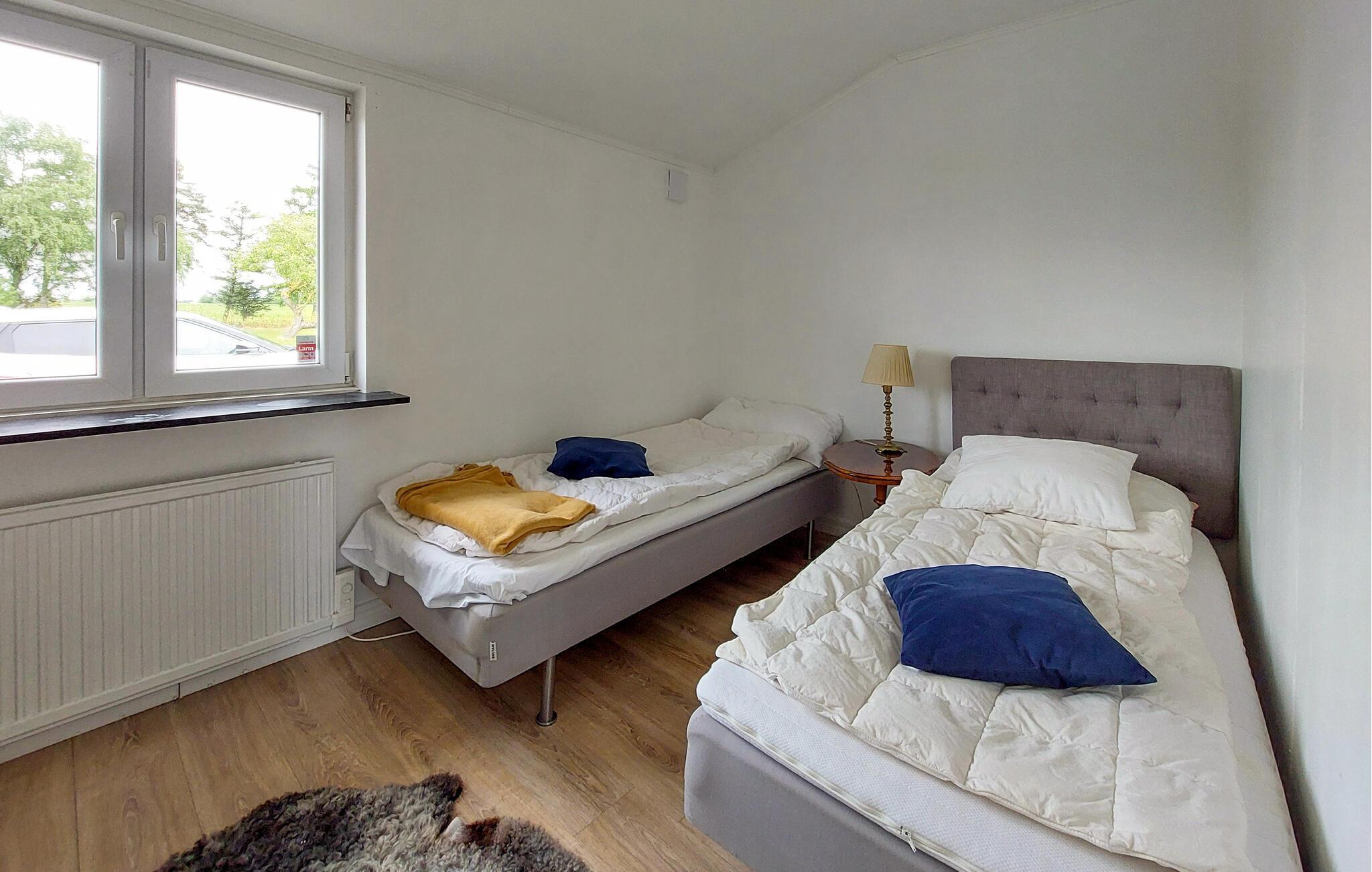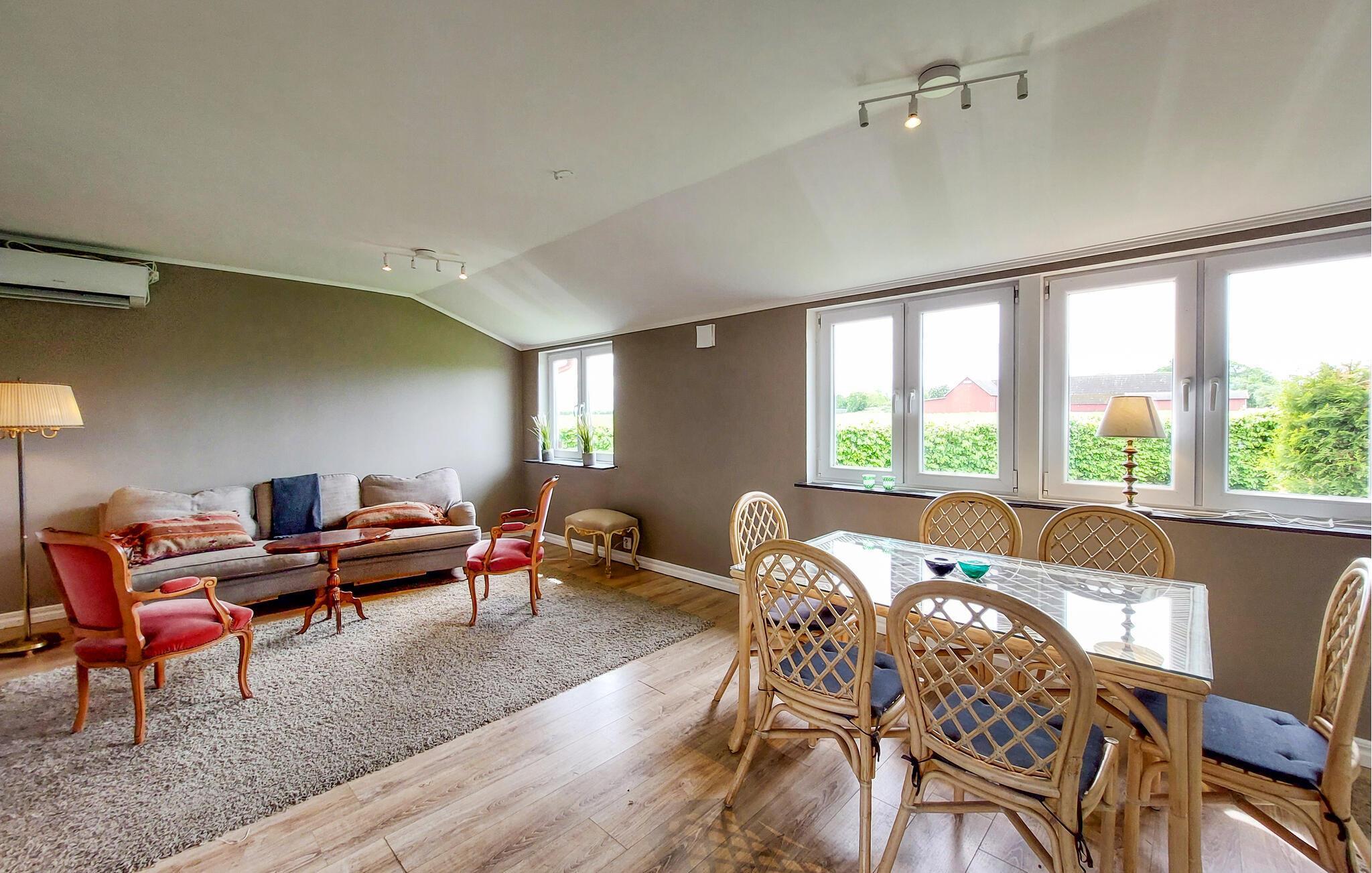 Nyd en rolig ferie i landlige omgivelser med kort afstand til indkøbscentre, strande og kulturelle udflugtsmål. Dette indbydende feriehus nær Helsingborg tilbyder ideelle rammer for afslappende dage med hele familien. Indenfor venter en rummelig, åben opholdsstue. Slap af i den komfortable sofa, eller nyd fælles måltider ved det lyse spisebord. I det moderne køkken kan I tilberede jeres livretter, også i ferien. Den stilfulde kombination af klassiske møbler og moderne elementer skaber en behagelig atmosfære.