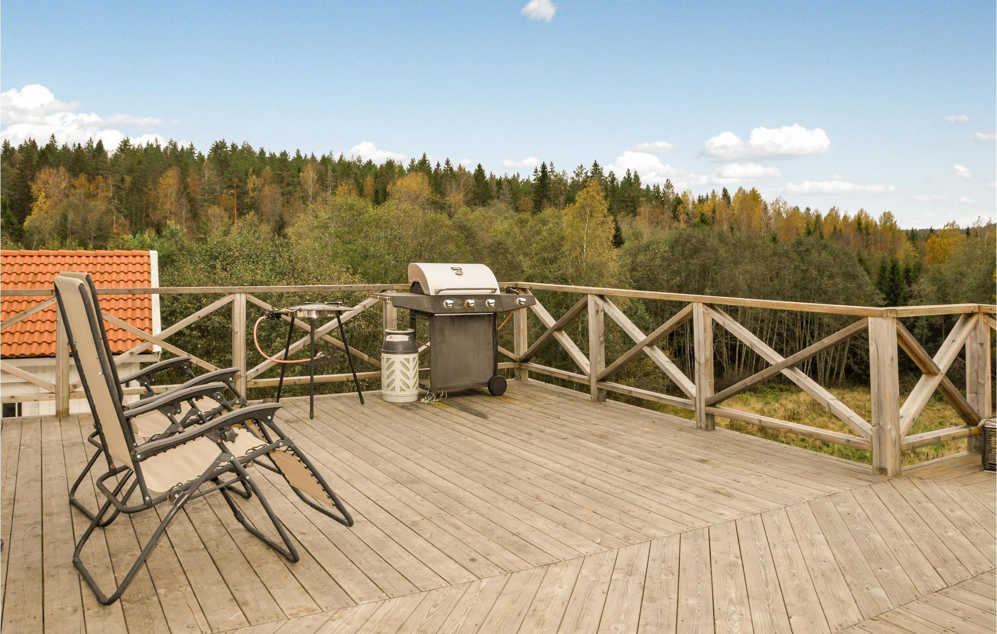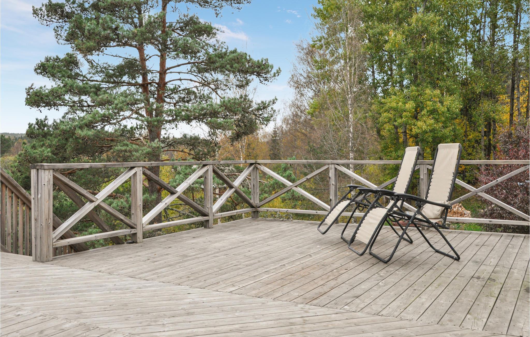 Oplev en afslappende ferie i denne rummelige ferielejlighed og oplev den charmerende region. Dette moderne indrettede hjem tilbyder masser af plads til at nyde en afslappende ferie med venner eller familie, omgivet af attraktive udendørs rekreative muligheder. Tilbered lækre måltider og sæt jer til rette for en sjov spilleaften i den indbydende stue. På jeres store, smukke terrasse kan I nyde solen og kigge ud over de store skove. Tænd op i grillen og fejr jeres tid sammen med stemningsfulde udendørs måltider. Tag på lange vandreture eller cykelture og oplev de mange maleriske badesøer, hvor I kan nyde en picnic eller prøve lykken med at fiske. Pluk bær og svampe i de duftende skove eller udforsk det nærliggende Karlstad ved Vänern, hvor charmerende butikker, museer og god underholdning venter på jer. Om vinteren inviterer langrendsløjper og sneskovandringer jer til at nyde aktiv fritid.