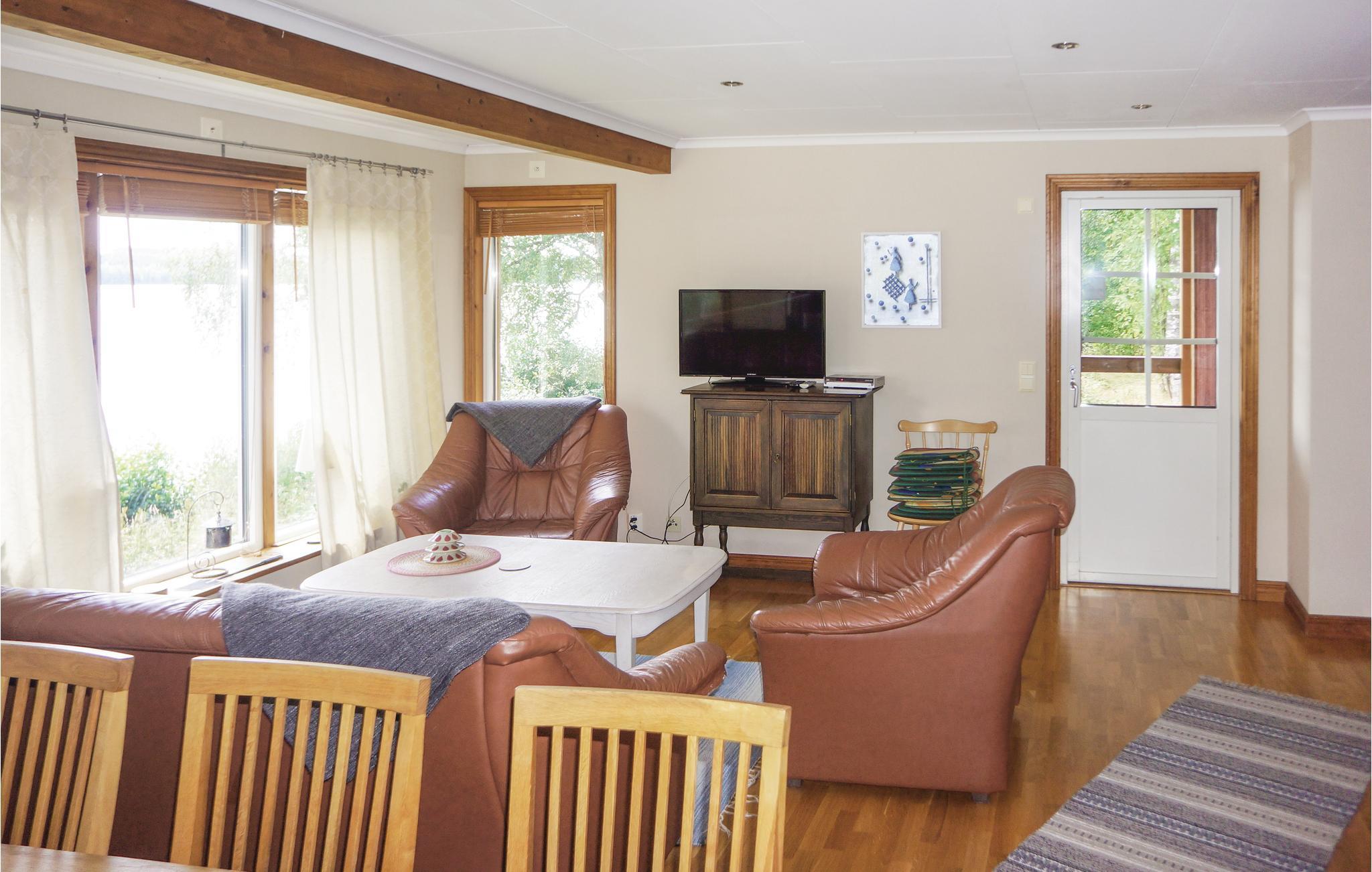 Fra husets spiseplads og dagligstue har man en vidunderlig udsigt ud over søen. I et af soveværelserne er der en behagelig dobbeltseng, i et andet en bekvem etageseng. I huset står der også en vaskemaskine. To sovepladser i annekset.