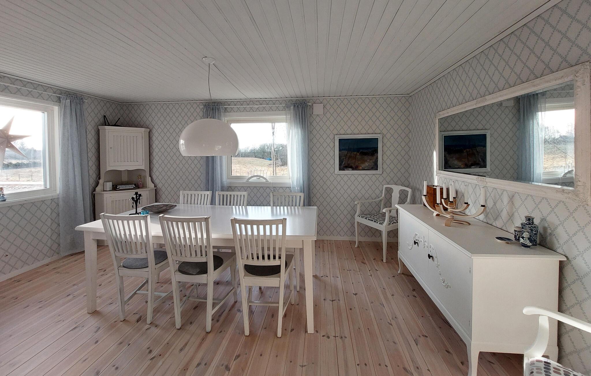 Træd ind og oplev husets stilfulde indretning, som skaber en harmonisk atmosfære, hvor I straks føler jer velkommen. Det åbne opholdsområde med store vinduespartier giver masser af naturligt lys og kombinerer moderne komfort med landlig charme. I kan tilberede måltider sammen i det fuldt udstyrede køkken og derefter nyde dem på terrassen. Den store have lægger op til leg og afslapning, mens de rolige omgivelser byder på afslappende timer omgivet af natur.
