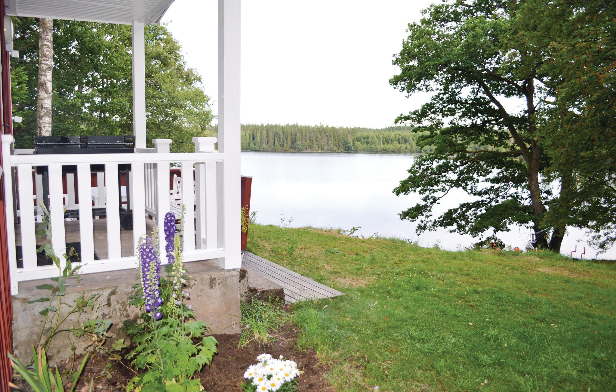 Her bor I ensomt, med skøn udsigt over Majsjön. I har egen badestrand og egen brygge hvor husets egen båd ligger. Huset er omhyggeligt renoveret. Stejl trappe til anden sal med tre soveværelser (trangt mellem soveværelserne). Vil I nyde stilheden på vandet kan I leje kano til to personer af ejer. I kan fiske gedde, aborre, ørred, sandart og regnbuelaks, her er gode chancer for at få noget på krogen. Nær Nationalparken Store Mosse og High Chaparrall. Køb ind i Gislaved.