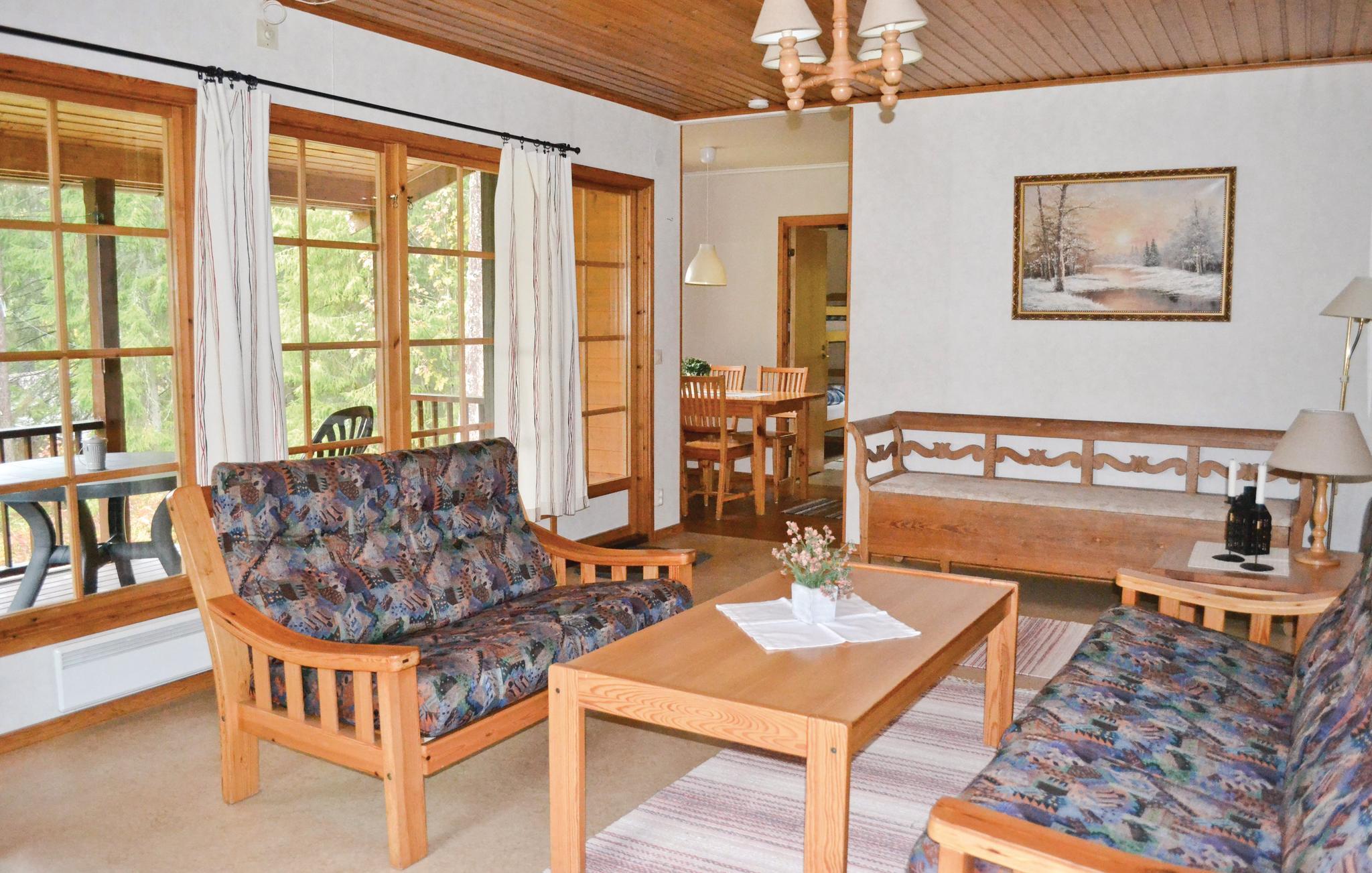 Den består af i alt seks hyggelige og veludstyrede huse ca. 50 m fra hinanden og med flot udsigt til søen, som ligger 10-150 m væk. Husene har dejlige overdækkede terrasser mod søen og åben pejs eller brændeovn til hygge og varme. Slap af på den dejlige terrasse i bekvemme havemøbler. Til hvert hus hører, gratis, en plastikbåd samt fiskekort for hele familien med tilladelse til at fiske i tre forskellige søer.