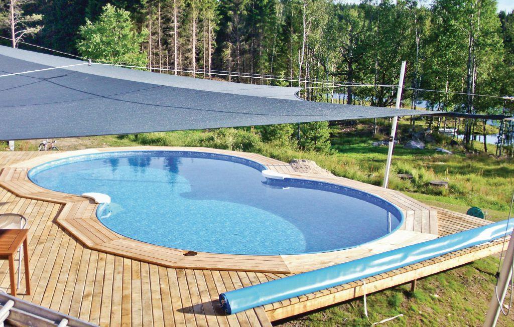 Udenfor er der en dejlig, stor swimmingpool, der opvarmes med solfangere, og henover det dejlige poolområde/terrasse er der et stort solsejl, der beskytter for solen, når den er fremme. Her er også en solid grill.