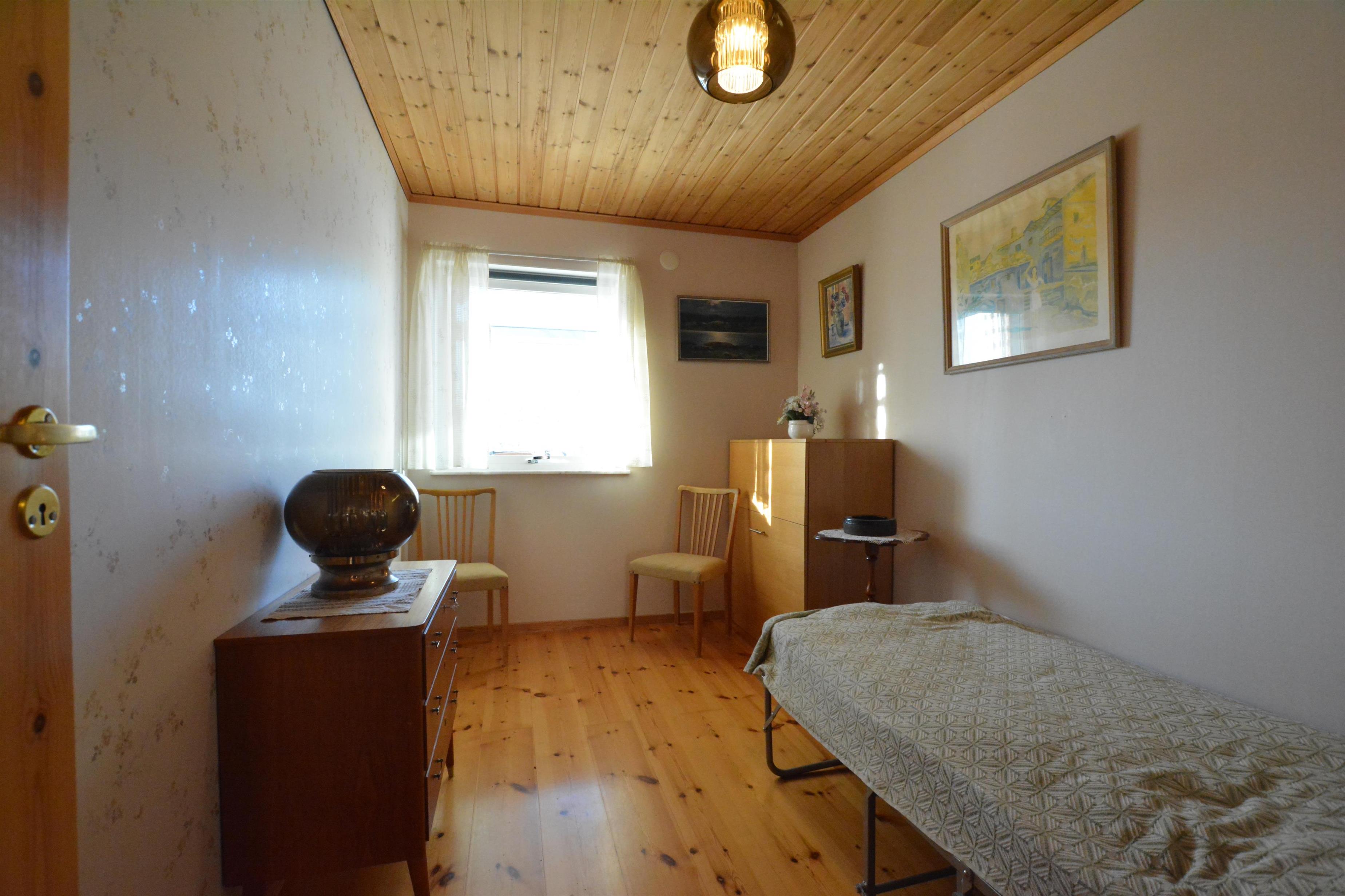Der er 3 soveværelser: 1 soveværelse med en dobbeltseng, et soveværelse med to dejlige senge i et ”sengeskab” (dvs. senge der om dagen kan foldes op mod væggen) og det tredje værelse, der er et kombineret enkeltværelse/kontor.