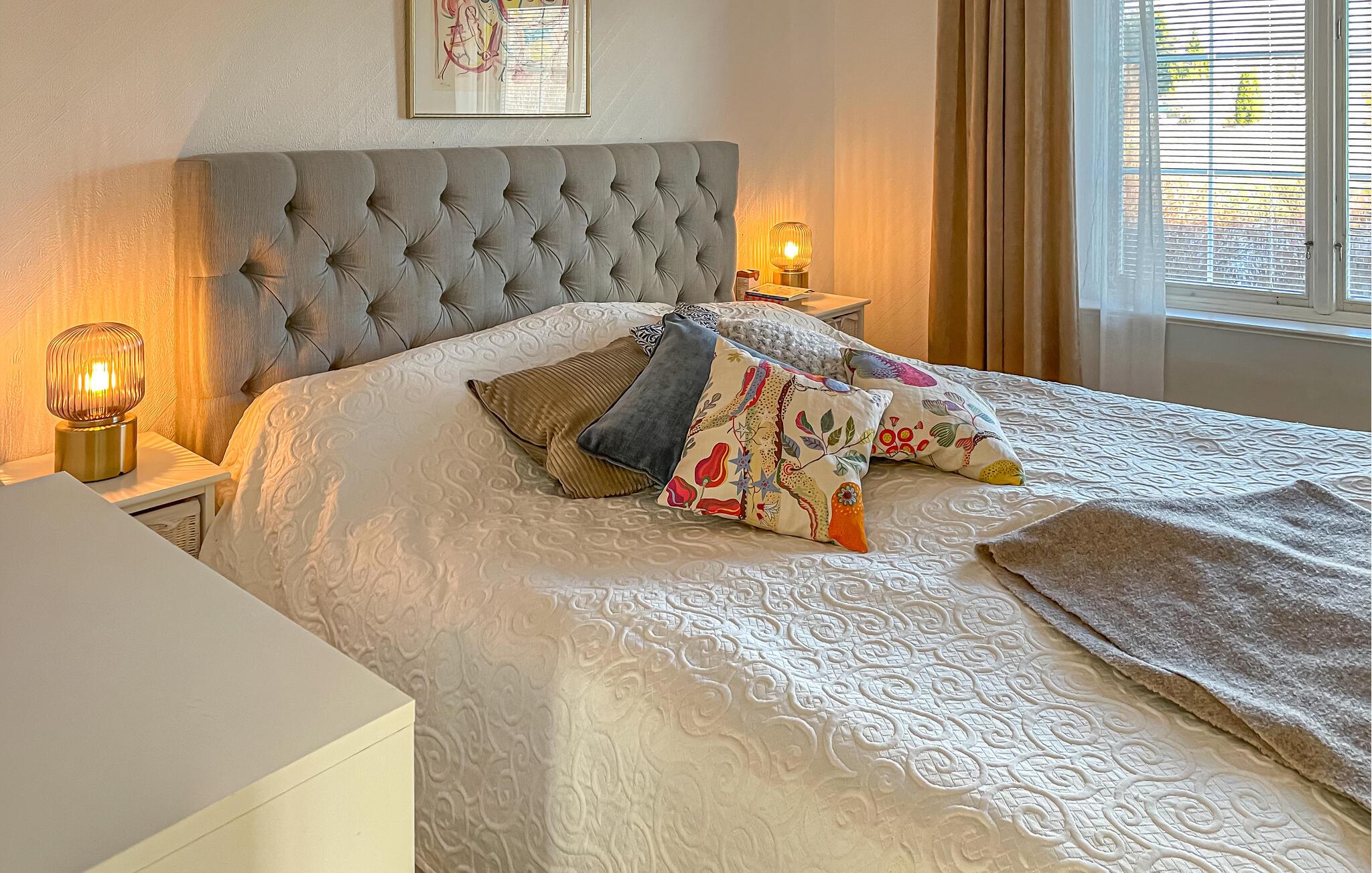 Dette hus har en stilfuld atmosfære med omhyggeligt udvalgte møbler, kunstneriske detaljer og masser af naturligt lys. Find jer godt til rette i den elegante opholdsstue, lyt til en podcast eller god musik og nyd hyggelige stunder i behagelige omgivelser. Lav mad sammen i det moderne køkken og tilbring hyggelige aftener med at spille kort omkring bordet.
