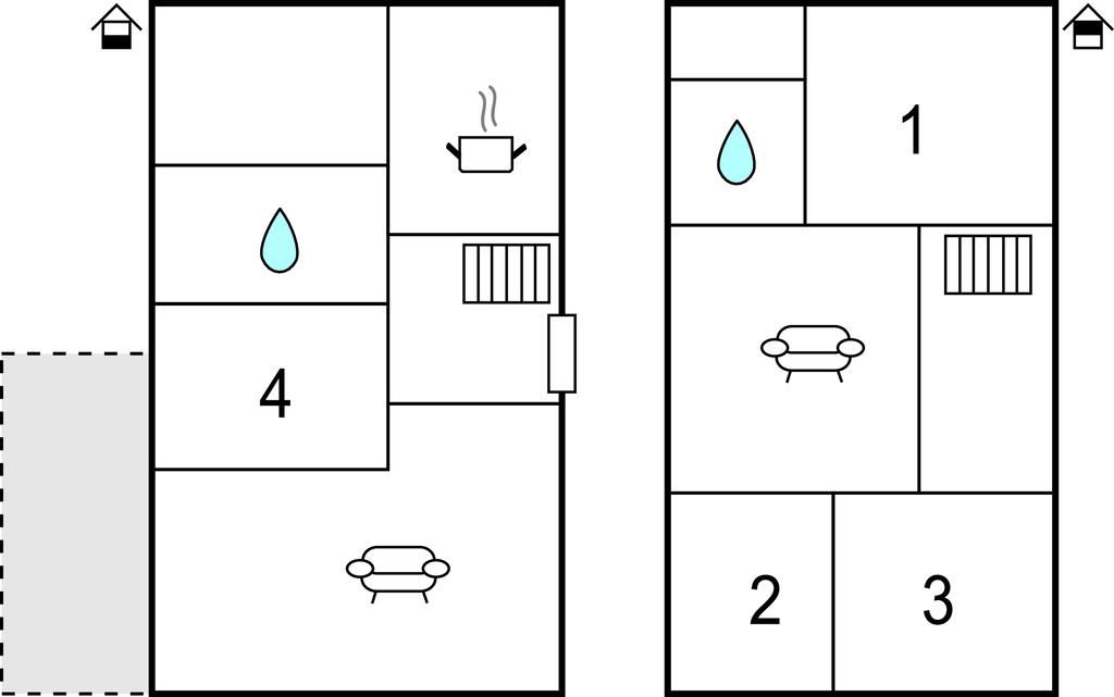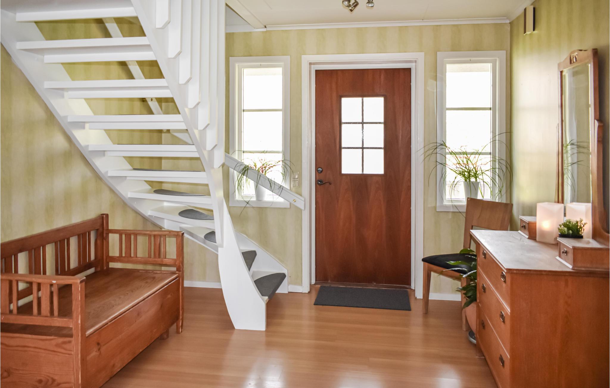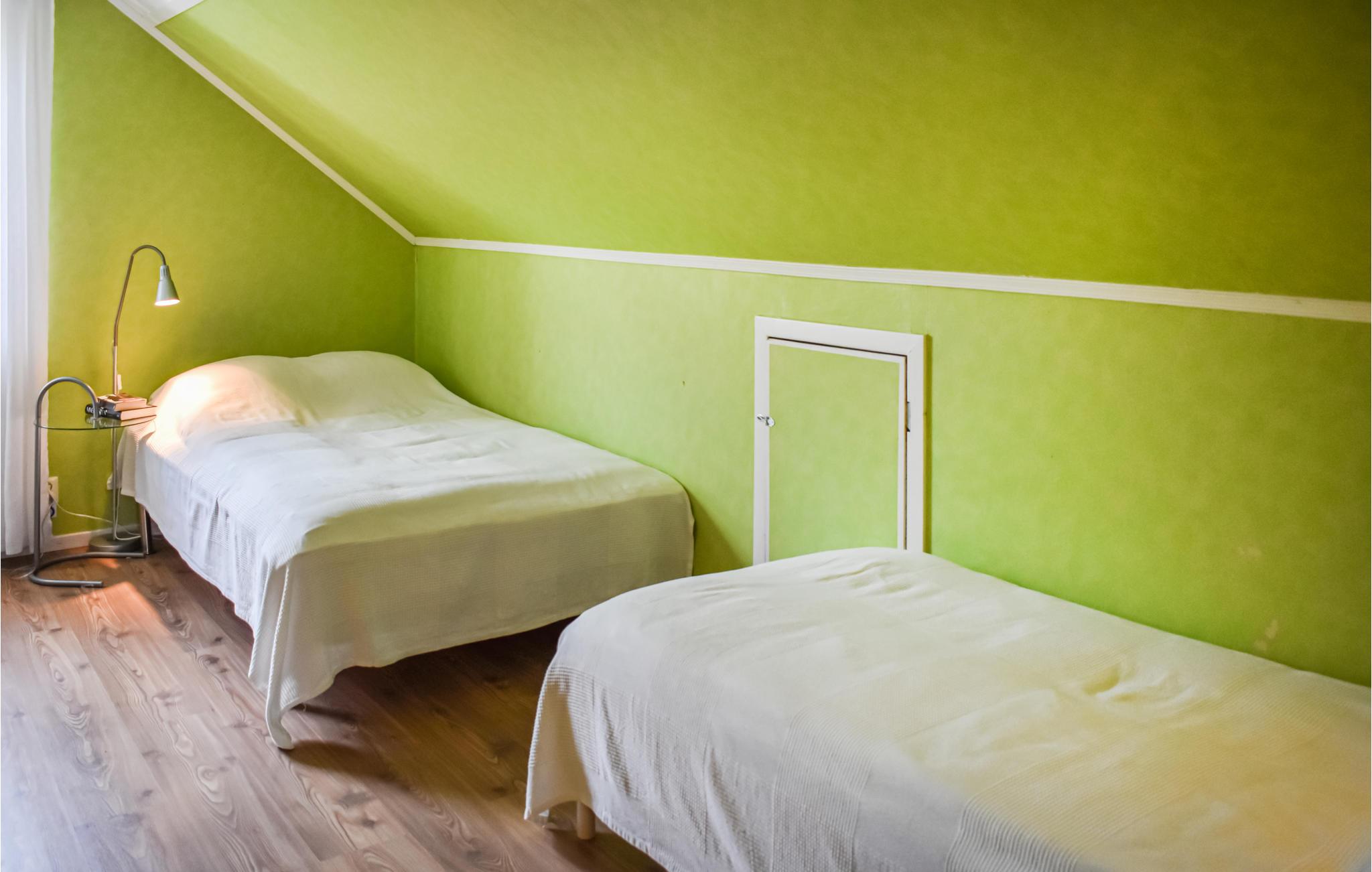 På husets første sal ligger tre af de fire soveværelser - i det ene står en dobbeltseng (140 cm), i det andet endnu en dobbeltseng (180 cm). I de to andre soveværelser er der to enkeltsenge i hvert værelse - det ene ligger i stueetagen.