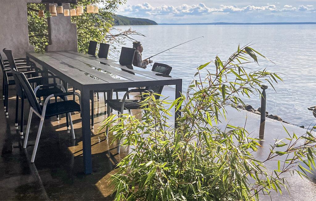 Nyd dejlige dage for to i dette feriehus med direkte adgang til søen. Træd indenfor og bliv budt velkommen af det funktionelle design. Brug huset til at slappe af efter en lang dag ved søen. De store vinduer tilbyder en vidtstrakt udsigt over Vättern, selv indefra, og oversvømmer værelserne med naturligt lys. Tilbered enkle måltider i det kompakte køkken og få mest muligt ud af jeres fritid. Træd ud på den fælles terrasse og nyd den umiddelbare beliggenhed ved søen. Gå ned ad trappen til havnefronten og sæt jer på stolene. Brug dette beskyttede sted lige ved vandet til en picnic eller bare slap af. I Gränna kan I udforske den lille havnepromenade og sørge for at prøve de berømte rød-hvide slikstokke. Tag færgen til øen Visingsö midt i Vättern og besøg Näs slotsruin eller Kumlaby kirke. Vandr langs Vätterleden og nyd den storslåede udsigt over søen.