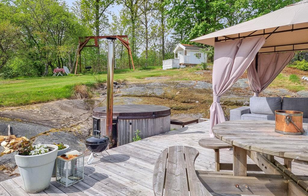 Nyd en afslappende ferie i dette feriehus midt i vidtstrakte marker og landlig idyl. Det lyse og indbydende interiør er smagfuldt indrettet og byder på plads til hyggelige måltider og rolige stunder. Slap af i opholdsstuen, nyd udsigten gennem de mange vinduer, eller læs en bog i et af de hyggelige siddeområder. Det kærligt designede køkken er udstyret med alt, hvad I behøver for at tilberede lækre måltider. Brug det store spisebord til fælles øjeblikke og lange samtaler. Gå ud i haven, som indbyder til leg, boltre jer og slappe af. Vildmarksbadet på træterrassen tilbyder afslapning med udsigt over vidtstrakte marker, mens det hyggelige siddeområde under lysthuset er et ideelt sted til en kop kaffe i eftermiddagssolen. Lad børnene hoppe på trampolinen, gynge eller lege i det lille legehus. Området omkring Grästorp inviterer jer til at udforske det smukke landskab. Udforsk de naturskønne omgivelser på cykel eller til fods. For familier anbefaler vi et besøg i det nærliggende naturreservat Halleberg-Hunneberg eller en tur til den imponerende fæstning i Vänersborg. Vänern, Sveriges største sø, ligger også i nærheden.