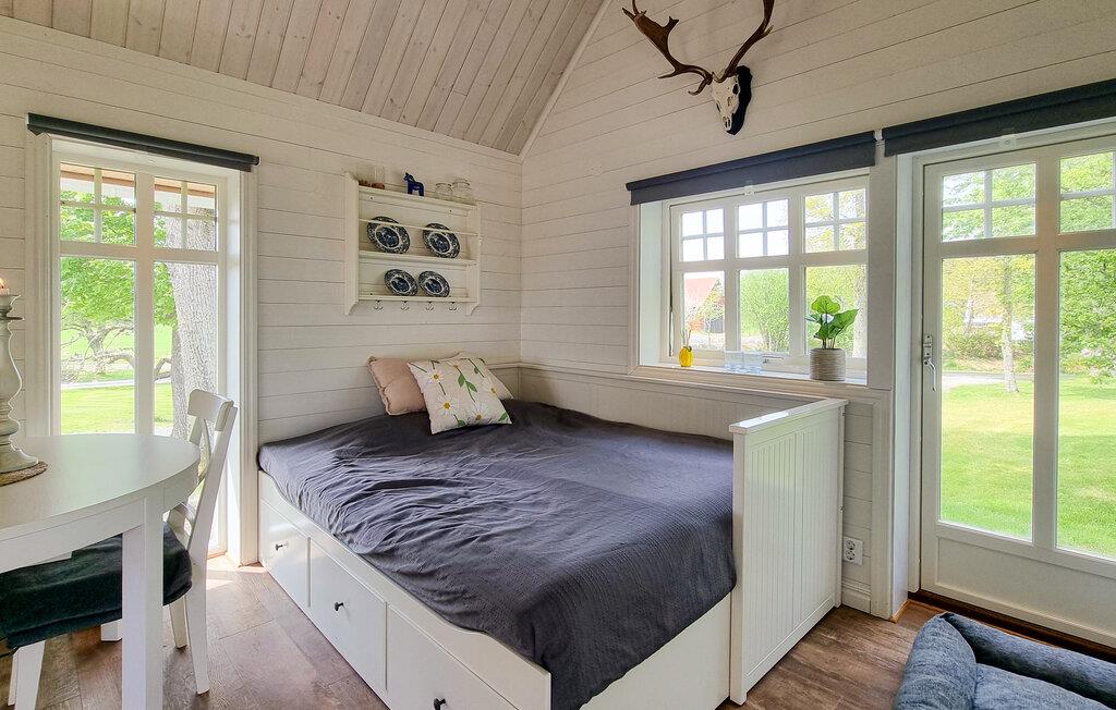 Oplev afslappende ferier i dette feriehus omgivet af marker og natur. Tilbring afslappende dage i dette lille feriehus, der tilbyder jer en dejlig ferie midt i landlig ro. Indenfor venter en harmonisk blanding af funktionalitet og komfort. Lav mad sammen i det smukke køkken, og lad jeres måltider blive dagens fokus ved det tilstødende spisebord. Om aftenen byder husets sauna på varme, beroligende øjeblikke med afslapning. Nyd det rummelige udendørsområde, der giver plads til afslapning og leg. Gå ture med udsigt over det omkringliggende landskab. Slap af på den lille terrasse og nyd livet. Jeres børn kan udforske området omkring huset. Udnyt nærheden til naturen til en række forskellige aktiviteter. Gå på vandreture eller cykelture i de idylliske omgivelser i Grästorp. Besøg naturreservatet Halleberg-Hunneberg, der er rigt på dyreliv, eller tag en dagstur til fæstningen i Vänersborg. Vänern-søen, ideel til svømning og sejlads, er også inden for rækkevidde.