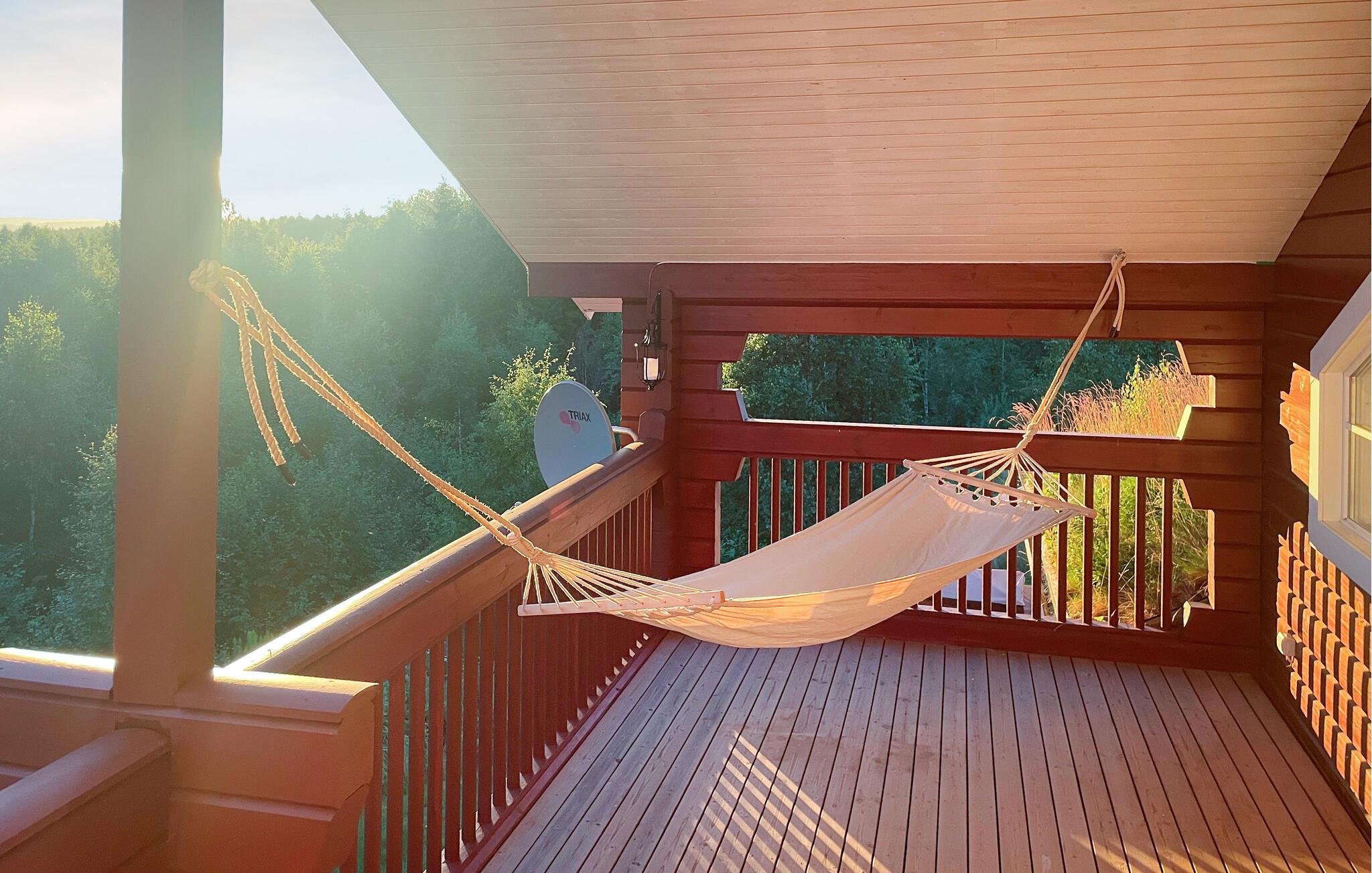 Tilbring afslappende dage i dette komfortable træhus med en vid udsigt over skove og enge.
