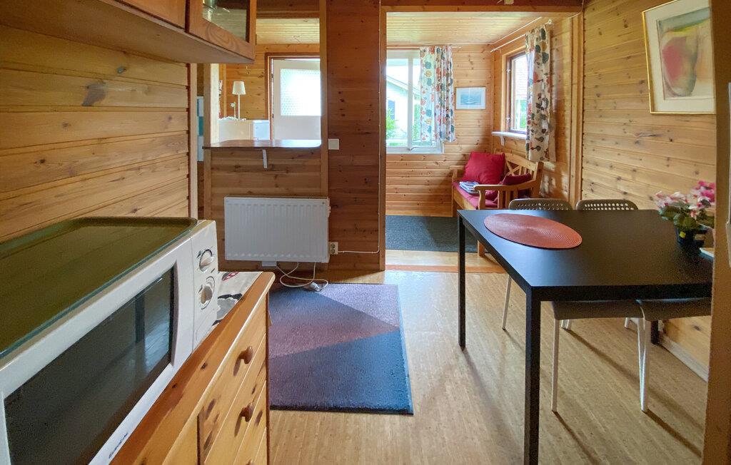 Dette lille, hyggelige feriehus giver jer en komfortabel base for at opdage Ölands skatte. Tilbered enkle måltider i det praktiske køkken, planlæg jeres aktiviteter ved spisebordet, og brug det til en hyggelig spilleaften om aftenen.
