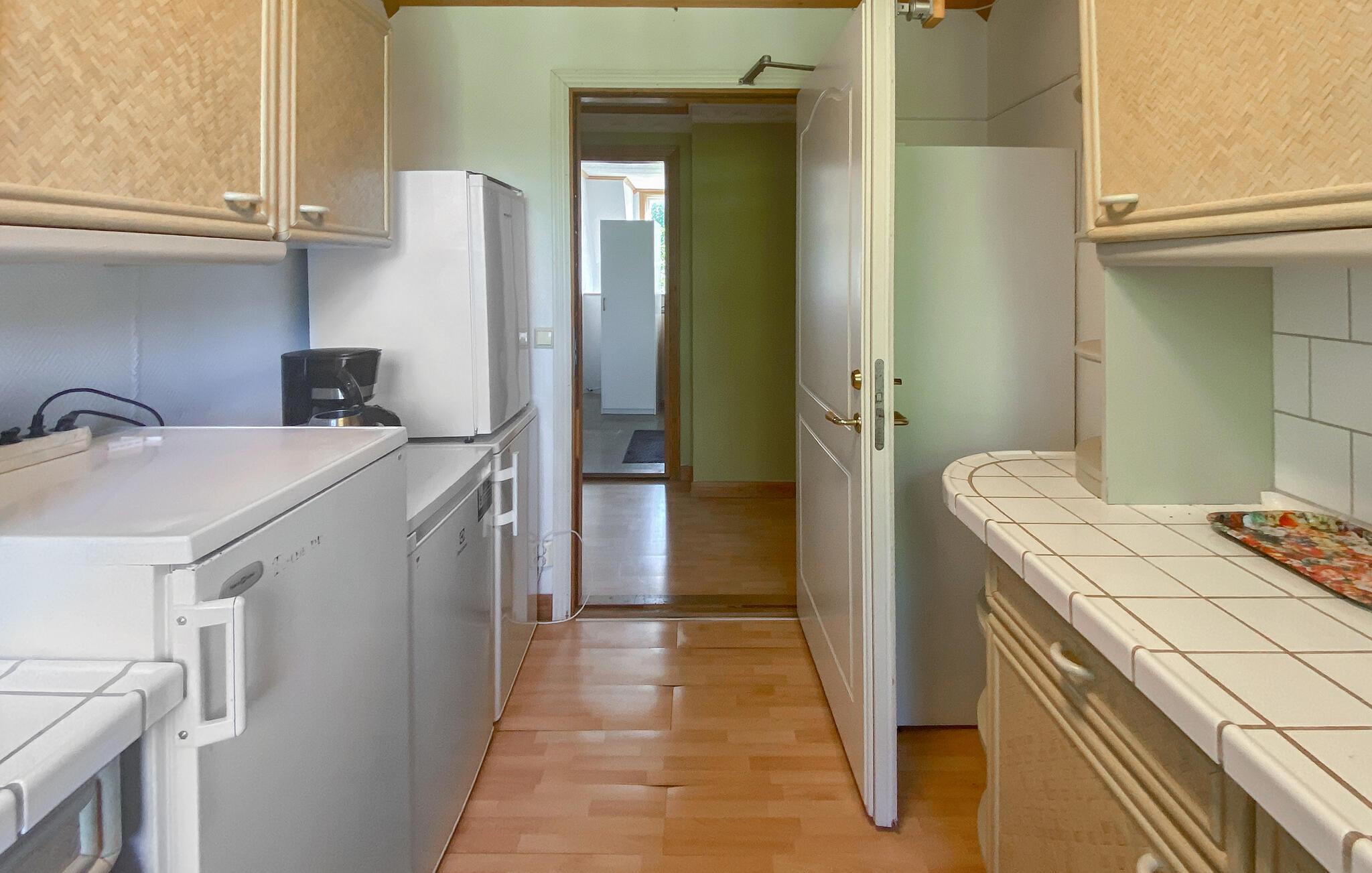 I dette idyllisk beliggende hus, der er særligt indbydende takket være sin smukke balkon, finder I hurtigt fred og ro og kan lade batterierne op. Varmt træ, rustikke møbler og et hyggeligt køkken sikrer en afslappende flugt fra hverdagen. Uanset om I lytter til god musik eller laver et lækkert måltid sammen – her sætter I tempoet for dagen.