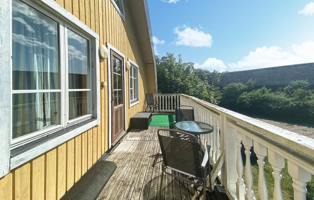 Træd ud på den store balkon med sit smukke rækværk i landlig stil om morgenen med en kop kaffe og nyd den vidunderlige udsigt over landskabet. I varmt vejr inviterer den velholdte have jer til hyggestunder. Find et sted udenfor og nyd naturens ro. Hvis I har lyst, kan I hygge jer under et af træerne med et tæppe og en bog.
