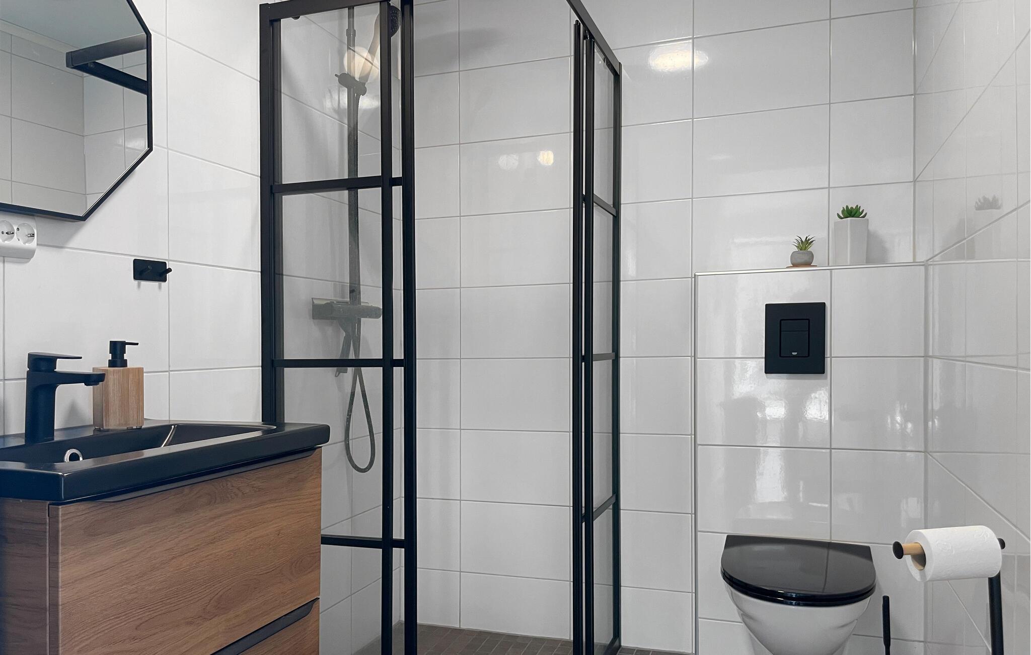Badeværelse (nr. 1) - WC. Varmt og koldt vand. Bruser