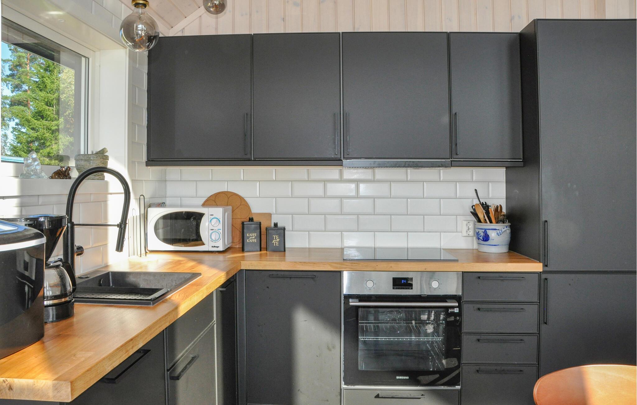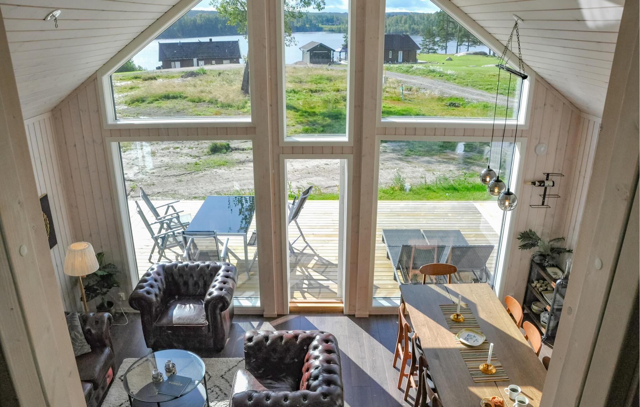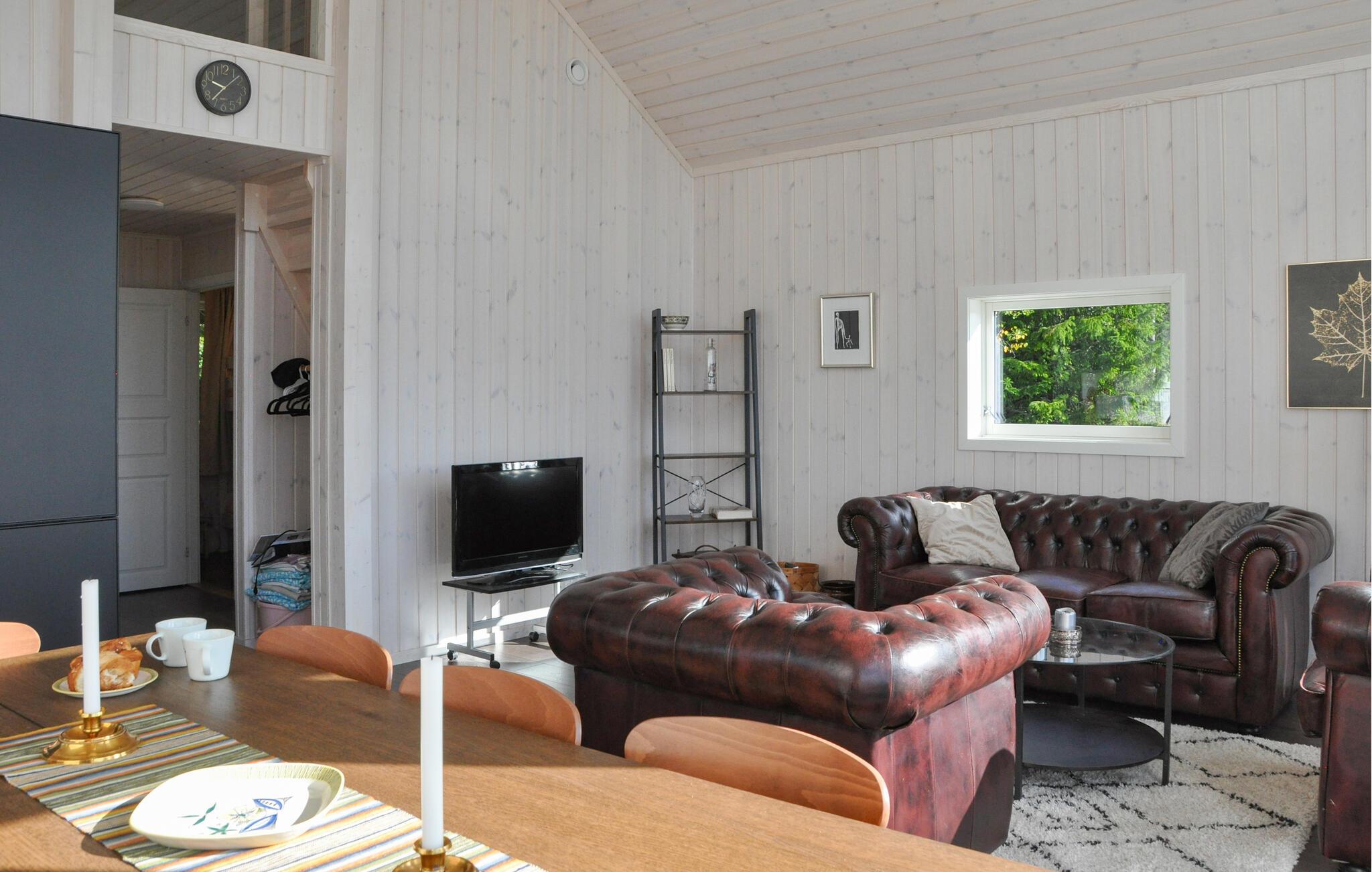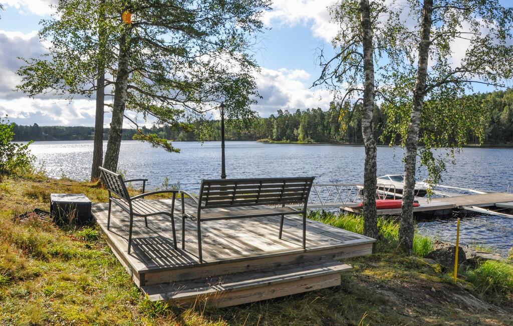 Dette feriehus ligger på et idyllisk næs nær vandet. Nyd de rolige omgivelser og lad blikket vandre gennem de store vinduesfronter, som giver jer en imponerende udsigt over den omkringliggende natur og søen. Find jer godt til rette på den rummelige terrasse og nyd den friske luft med en kop kaffe eller en afslappet middag udenfor. Slap af i den smagfulde stue med sine elegante sofaer og hyggelige atmosfære. Slap af og nyd den fred og ro, som dette hus byder på.