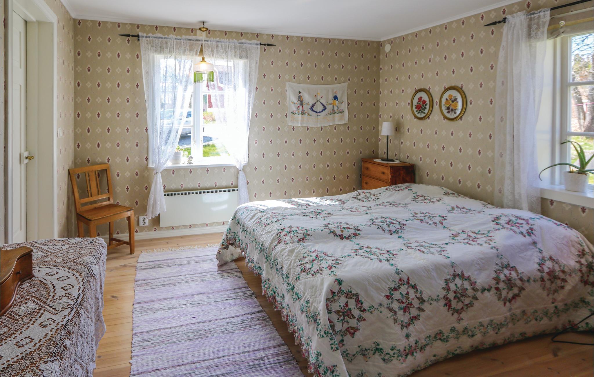 Her er plads til 6 gæster, der kan fordele sig på tre soveværelser. 2 af dem har dobbeltsenge, mens det sidste har 2 enkeltsenge.