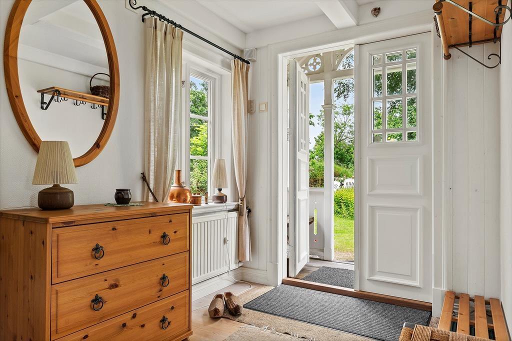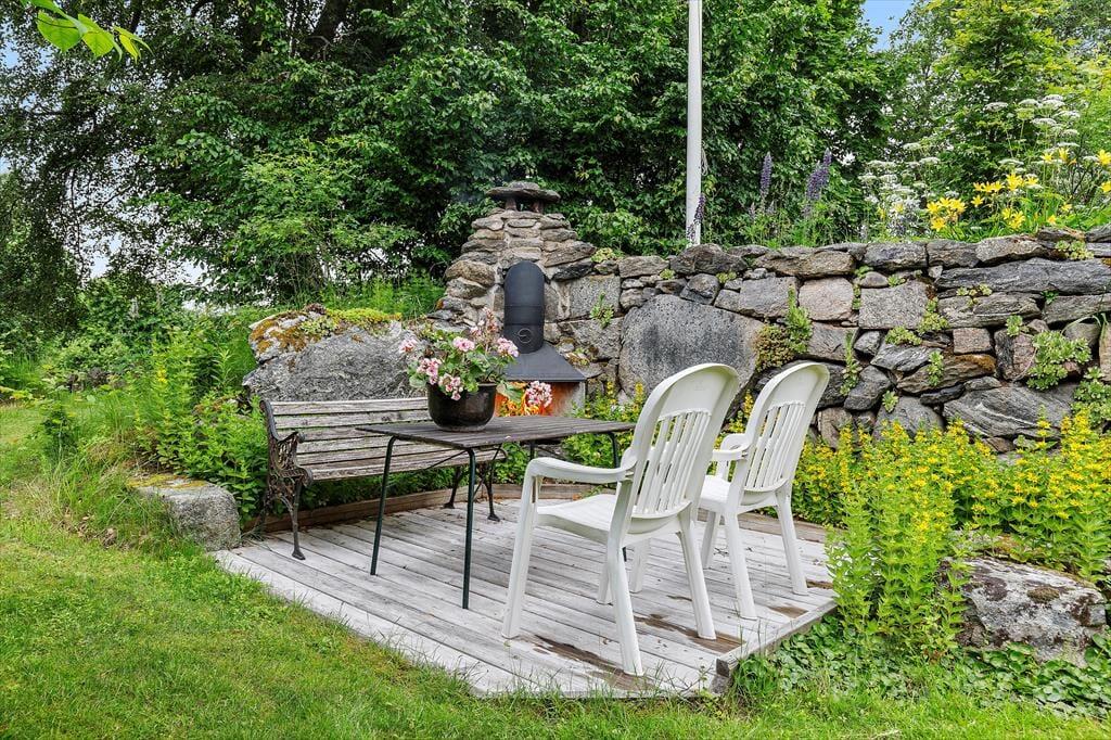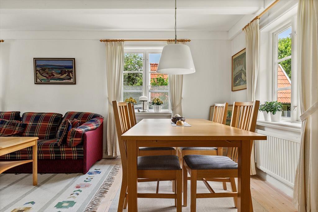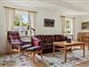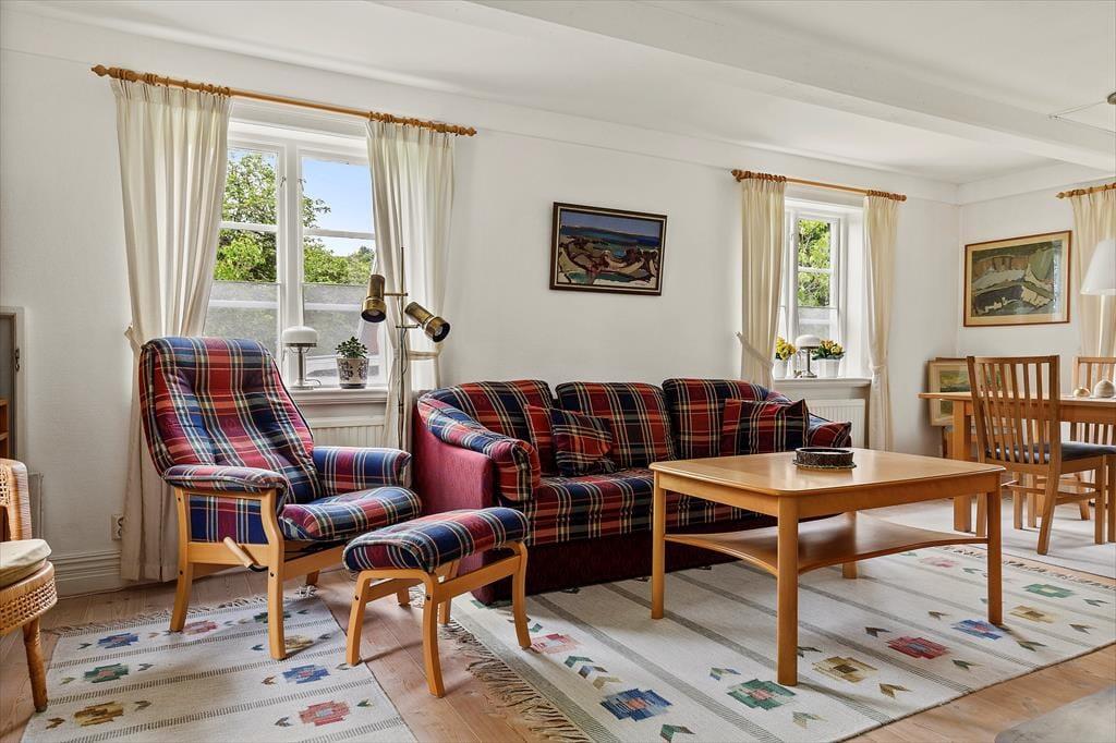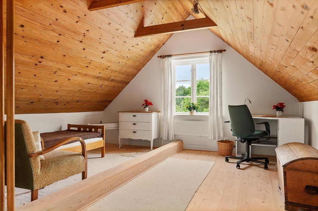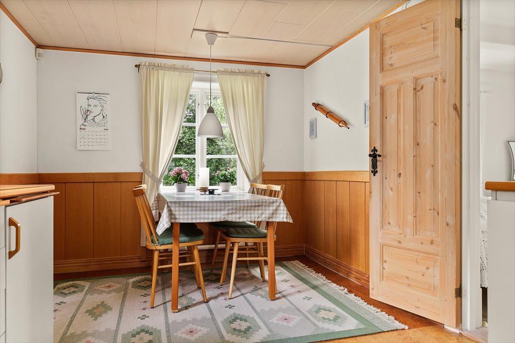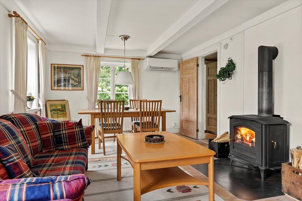 Dette hyggelige feriehus er indrettet i en klassisk stil med matchende møbler. Den lille indgang fører til en stor stue med sofa, brændeovn og spisehjørne. Fra entreen er der også adgang til et soveværelse med dobbeltseng. Køkkenet er udstyret med køleskab med fryser, komfur, mikroovn, opvaskemaskine, kaffemaskine og spisehjørne. Overalt i huset er der et godt lysindfald. I entreen, soveværelserne og stuen er der flotte trægulve og i køkkenet er der vinylgulv. Ved siden af køkkenet er der et stort badeværelse med toilet, bruser og vaskemaskine. Fra entreen fører en stejl og smal trappe op til førstesalen. Her oppe er der et soveværelse med en dobbeltseng. Derudover er der på førstesalen et åbent rum med en yderligere soveplads, samt et skrivebord. I haven er der mange gode steder, hvor man kan sidde og nyde udsigten. Udenfor er der flere steder havemøbler og udendørs ildsteder. Der er rigeligt plads til pjat og leg og derudover er der bagved huset et udendørs brusebad. En robåd kan efter aftale med husejeren lejes på stedet. Køer og andre dyr går nogle gange rundt på markerne og bliver fodret af husejeren.