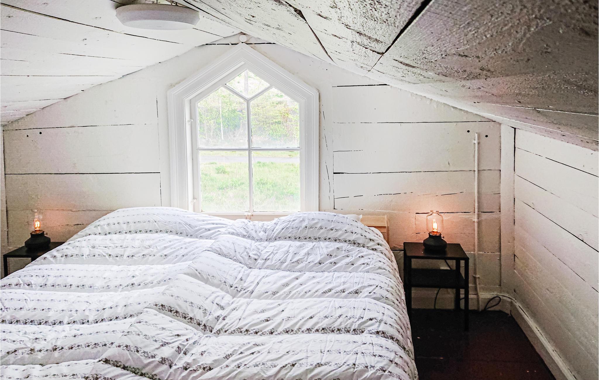 Ovenpå / på loftet er der et værelse med to senge, der kan bruges om sommeren i stedet for sovesofaen. Hvis I vil slappe lidt ekstra af, kan I sætte jer i den brændeopvarmede whirlpool til otte personer, som kan lejes gennem ejeren.