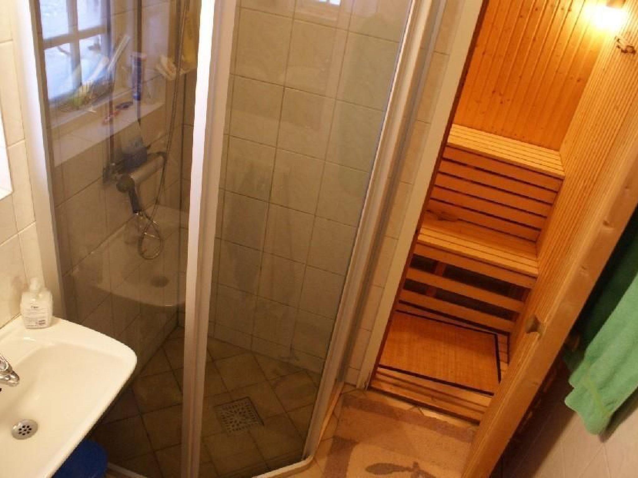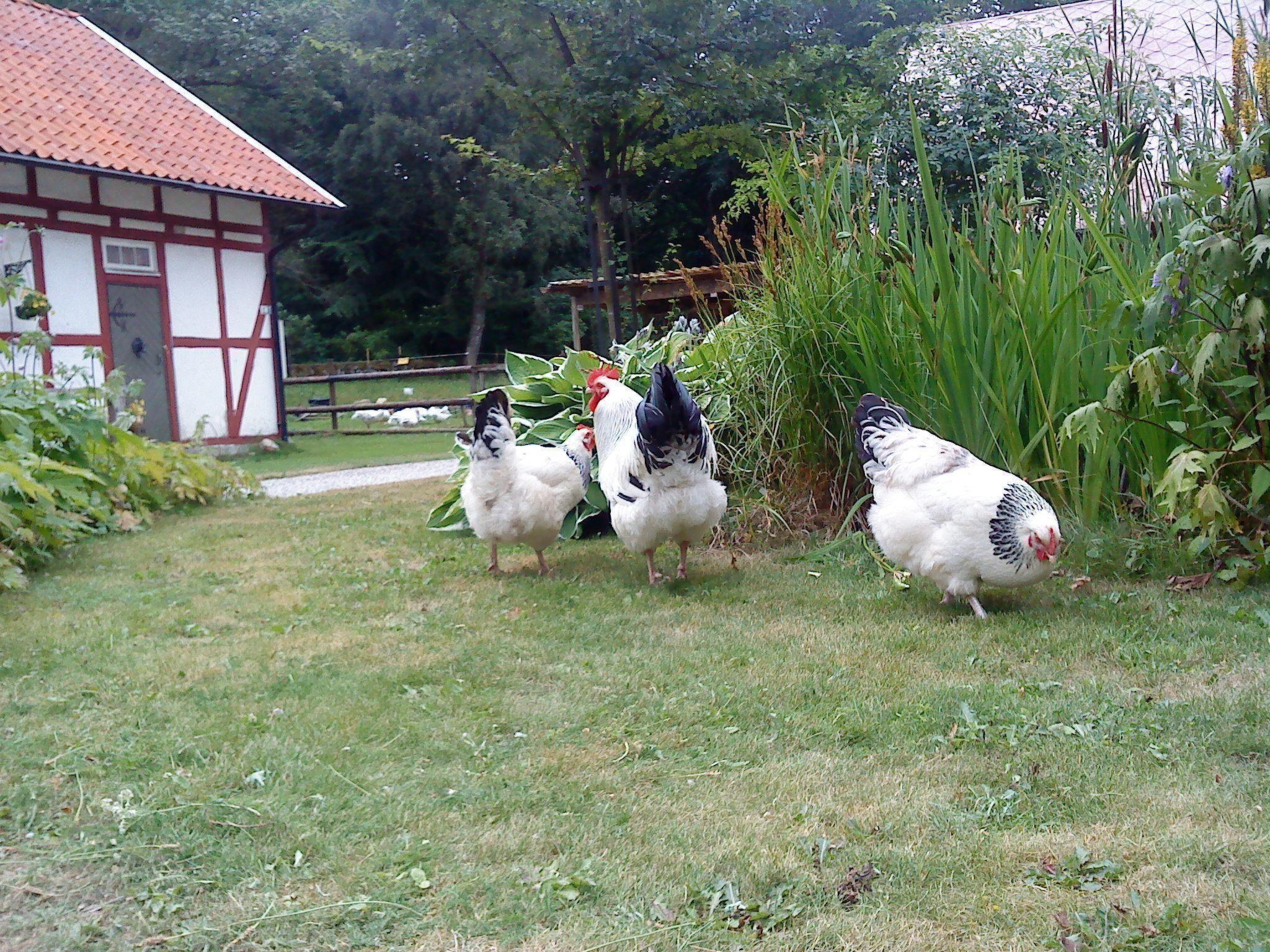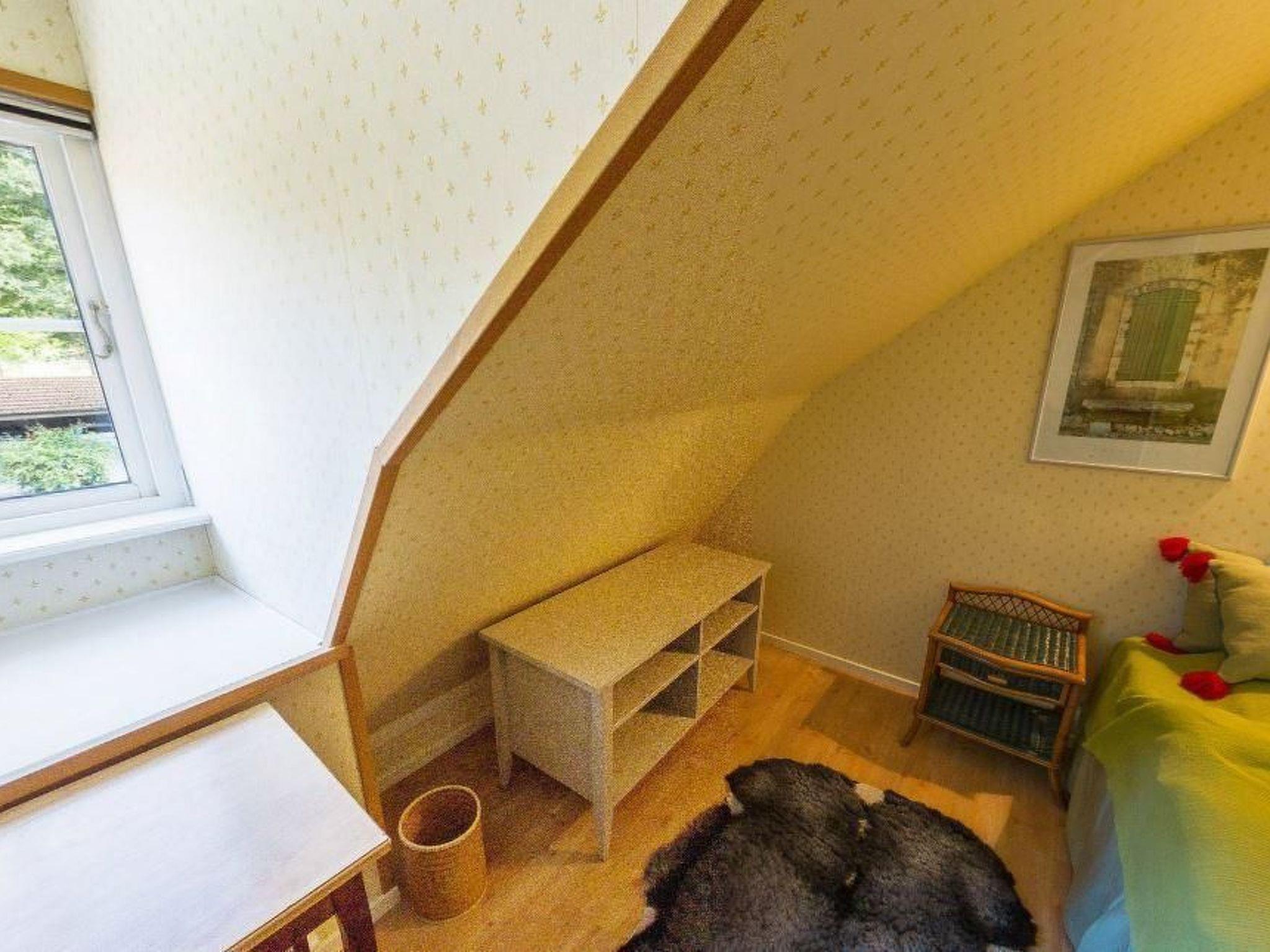 The holiday house is one of three buildings on the farm, of which one is occupied by the owner and is about 100 metres away. Other residential houses are at least 500 metres away. The one-hectare site also has hens, sheep and geese in fenced areas. The house of around 120m² is on two floors. The ground floor has a 60m² living room with a kitchen, equipped with satellite TV, a DVD and CD player, an electric stove with two ovens, a microwave, a big fridge, a dishwasher, a coffee machine, a toaster and a mixer. The washing machine is in a room next to it and there is a big freezer in the bicycle storage room. There is a bathroom with a shower and a sauna. Upstairs there are four bedrooms and a toilet. The smallest bedroom has a bunk bed and a changing table. A cot is available on request. The other three bedrooms each have two single beds, so there are a total of eight beds measuring 90 x 200cm. The bedrooms upstairs have electric radiators, while the living room downstairs has Daikon air conditioning and there are electric radiators in the hallway and in the bathroom.