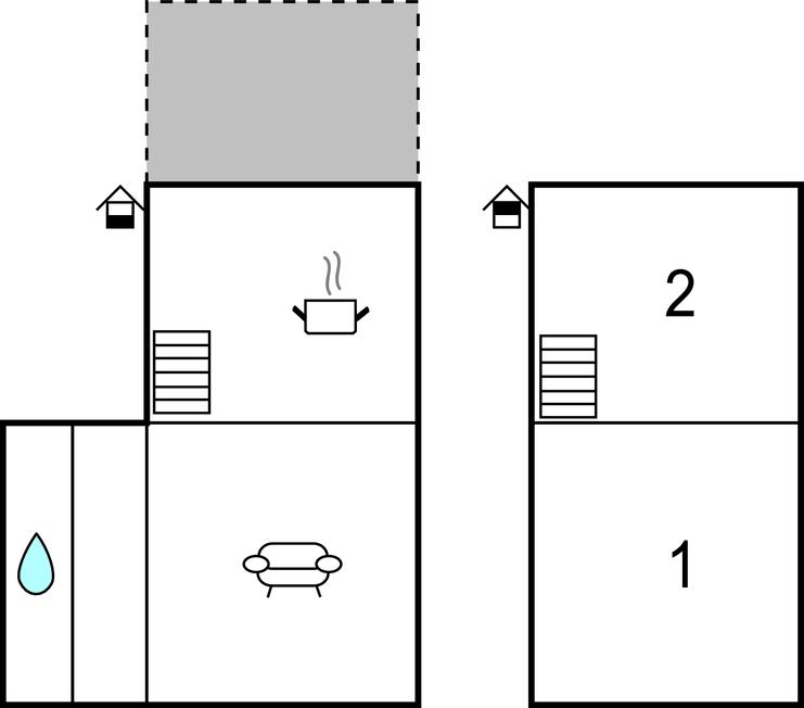 Der er plads til seks personer i det hyggeligt indrettede hus i de to soveværelser samt i stuen.