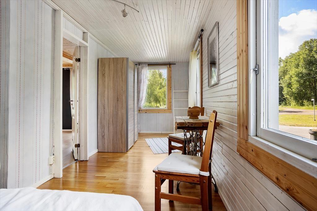 Ein geräumiges Urlaubsdomizil in Seenähe, ideal gelegen in einer ruhigen Umgebung mit wenig Autoverkehr. Perfekt geeignet für zwei Familien. Es ist zentral in der kleinen, nur etwa 50 Einwohner zählenden Ortschaft Allgunnen im Gemeindegebiet von Högsby gelegen und nur 50 m von dem gleichnamigen, etwa 16 km langen und 1.300 ha großen See Allgunnen entfernt, der sehr gute Angelmöglichkeiten bietet. Der nächstgelegene Badeplatz ist vom Haus aus nur etwa 300 m entfernt. Zum Einkaufen fährt man in das etwa 15 km entfernte Högsby; zur Ostsee bei Mönsterås und Timmernabben sind es nur etwa 35 km. Mehrere in der Umgebung befindliche Elchparks sowie der Themenpark "Astrid Lindgrens Värld" in Vimmerby und die in der Nähe liegenden Glashütten des sog. Glasreichs lohnen einen Besuch.