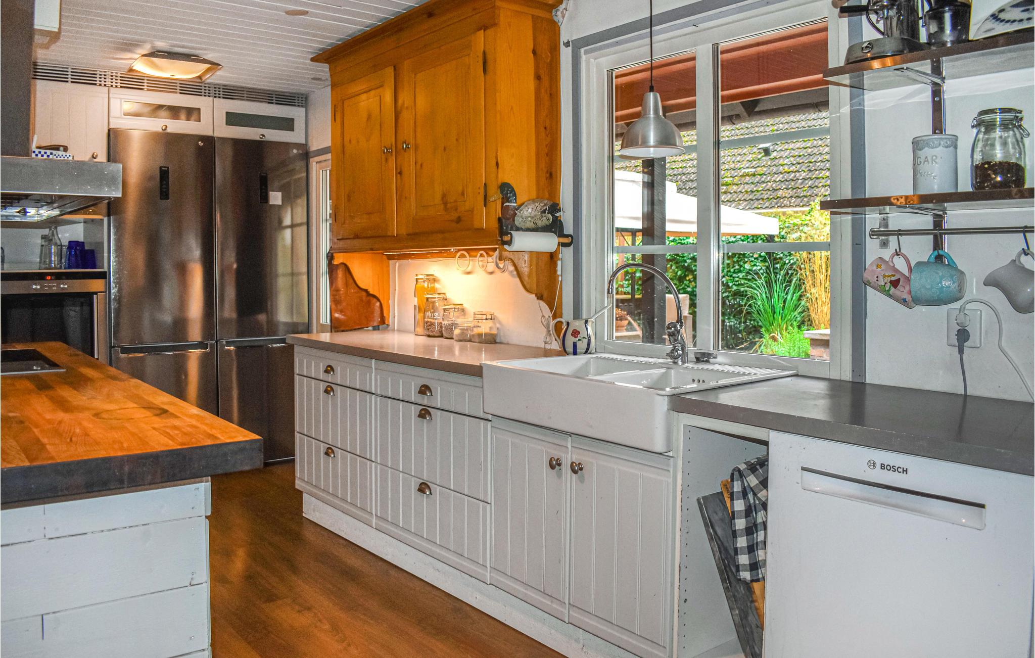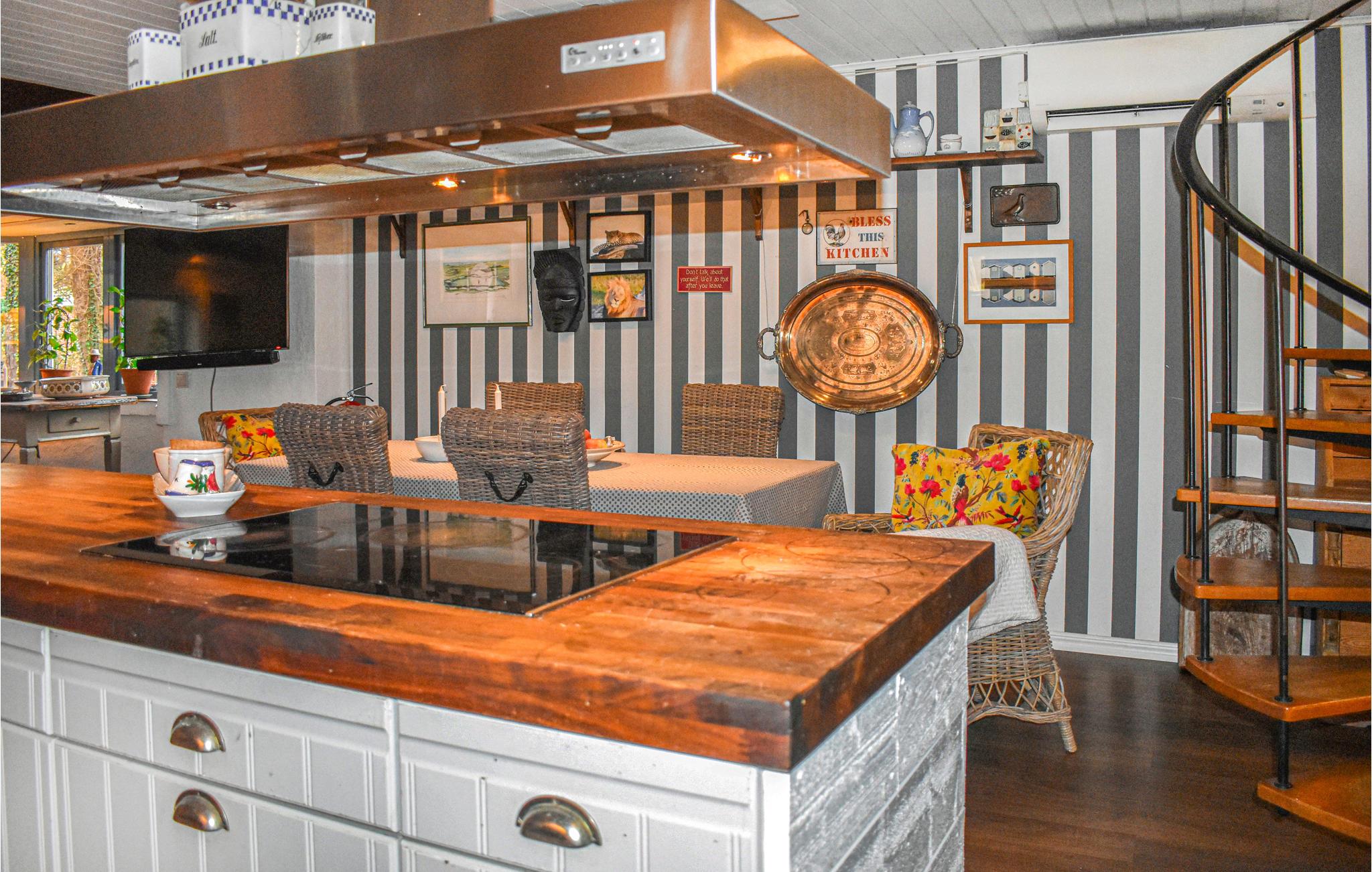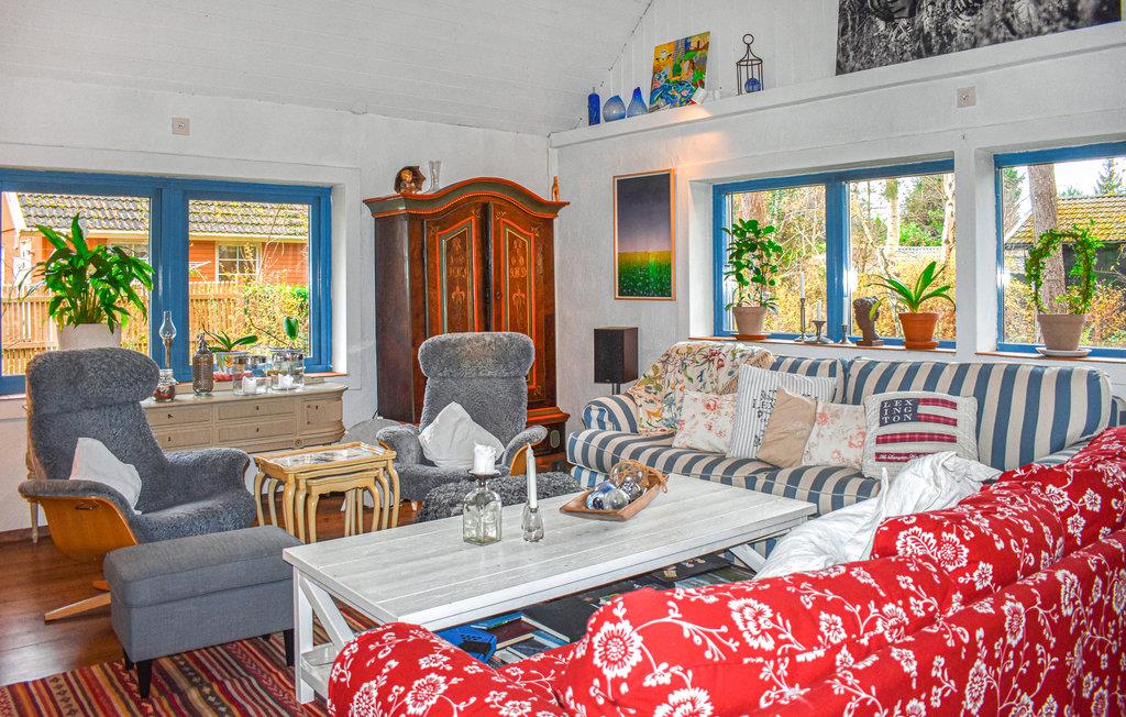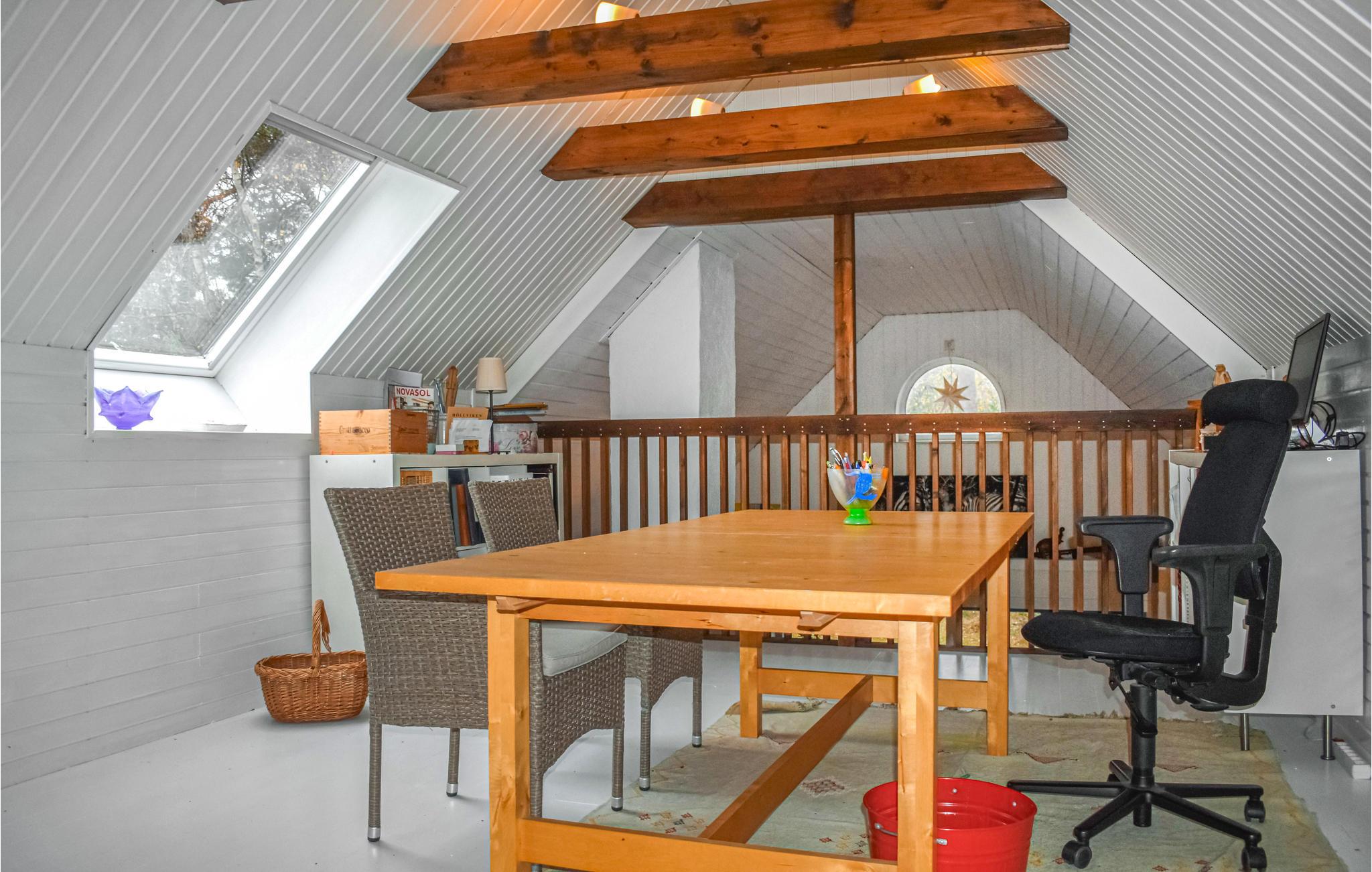 Dette rummelige hus er ideelt for familier, der leder efter et hus med særegen karakter og god komfort. Blandingen af farverigt tapet, et væld af små dekorative detaljer, antikke møbler og moderne elementer giver huset sit varme udtryk, og her føler man sig straks hjemme. Her kan I rigtig nyde en masse kvalitetstidammen, det være sig med god mad ved spisebordet, med bagning eller med timers brætspil i sofahjørnet. En vindeltrappe fører op til første sal og dermed også til det store åbne rum, som giver huset rummelighed, og som i øvrigt letter kommunikationen. I kan også tilbringe hyggelige timer på den store terrasse med en lækker grill eller en kølig forfriskning i det overdækkede loungeområde.