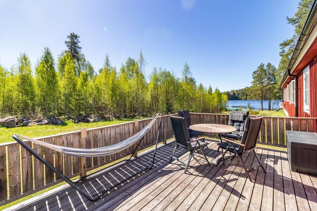 Feriehuset Ottern ligger ved Hagfors i den smukke region Värmland, idyllisk placeret ved den nordlige spids af søen Knon. På grunden findes der fire andre feriehuse samt viceværternes eget hus – ideelt, hvis flere familier ønsker at holde ferie sammen. Mindre indkøb kan klares i Ekshärad, ca. 16 km væk, mens større indkøbsmuligheder findes i Hagfors, ca. 27 km væk. Naturelskere og familier kan besøge elgparken og Brattfallet-vandfaldet i Ekshärad, mens der i Hagfors venter et udsigtstårn og et jernbanemuseum. Vintersportsentusiaster når nemt skiområderne Torsby (ca. 53 km) og Långberget (ca. 110 km). Lige ved huset inviterer en badebro samt kanoer og en robåd til mange hyggelige timer på vandet.